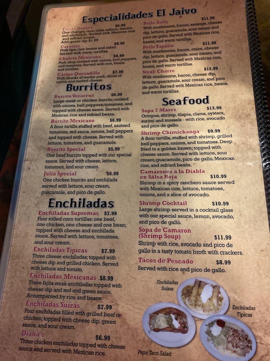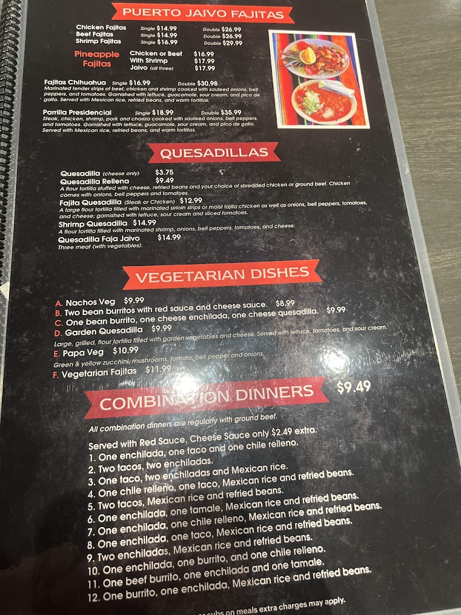 One Bean Burrito, One Cheese Enchilada, One Cheese Quesadilla
