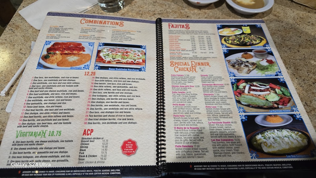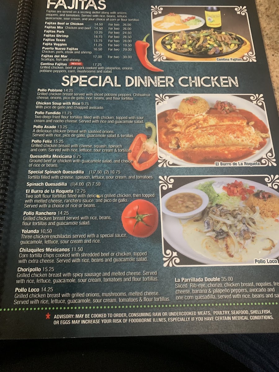 Rib-eye with sizzling onions, peppers and tomatoes. Served with rice, beans and tortillas.
