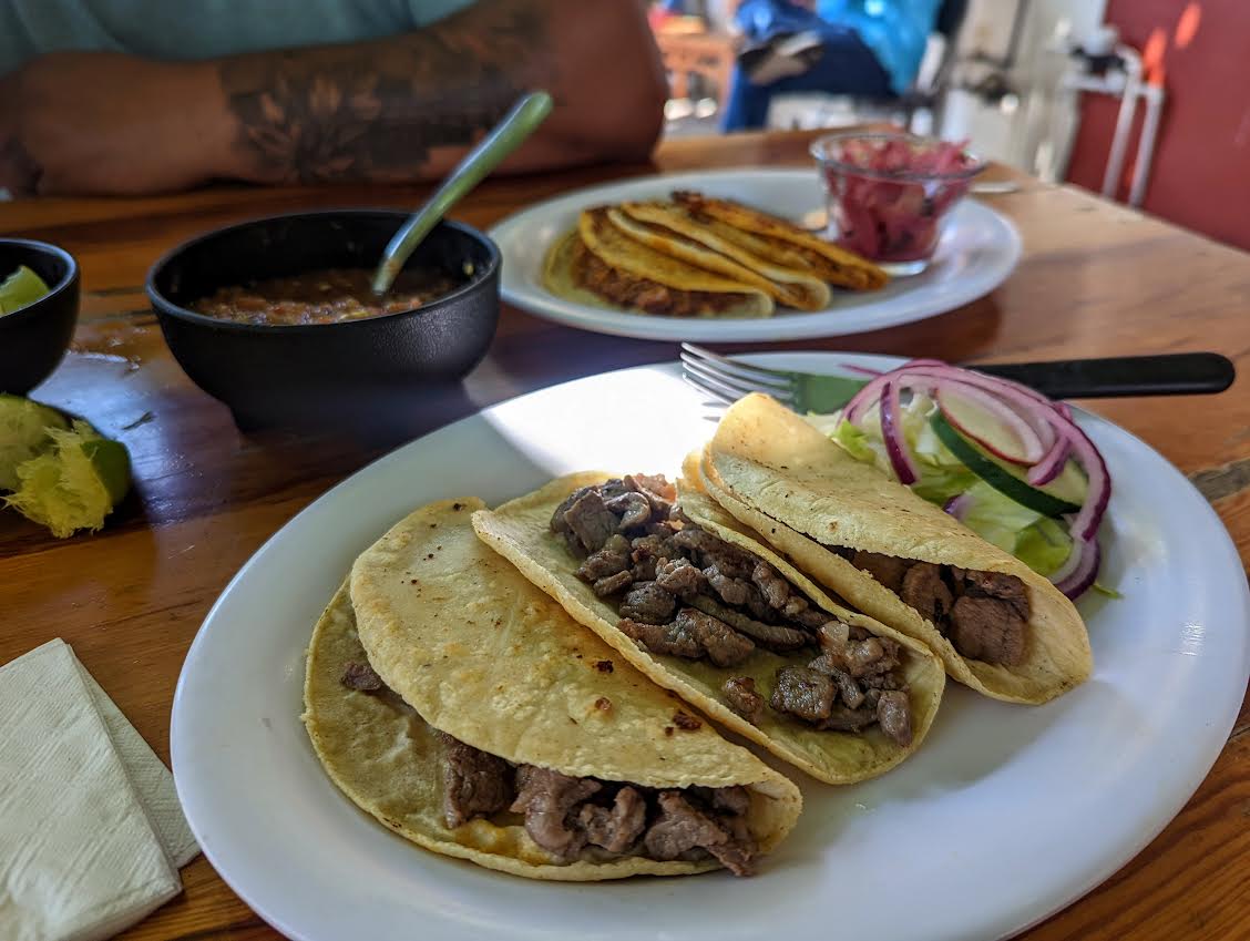 Loved this place - we randomly stopped here for some drinks and tacos and I'm so glad we did. Between the two of us - 4 beers and 9 tacos (6 beef, 3 pork), we spent 380 pesos, so about $24 cdn - I'm sure there were probably some taco trucks off the main drag in downtown PV, but it was a restaurant and had tables inside and outside along the sidewalk, so it was nice and relaxing. I would have taken a lot more photos, but we were starving! We would definitely come back here to try more items from their menu.