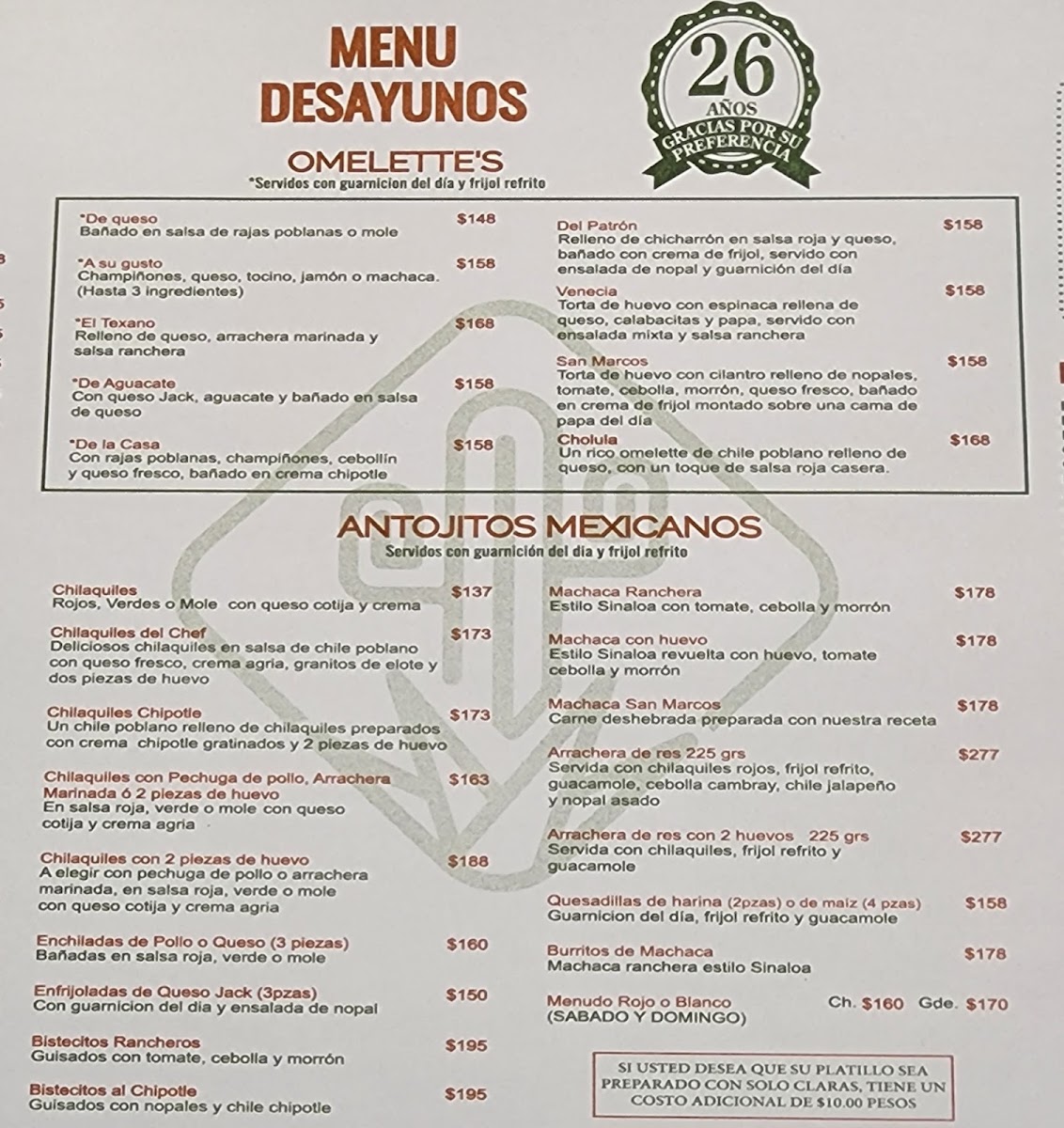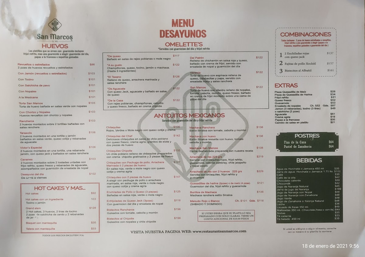 Restaurant San Marcos Menu