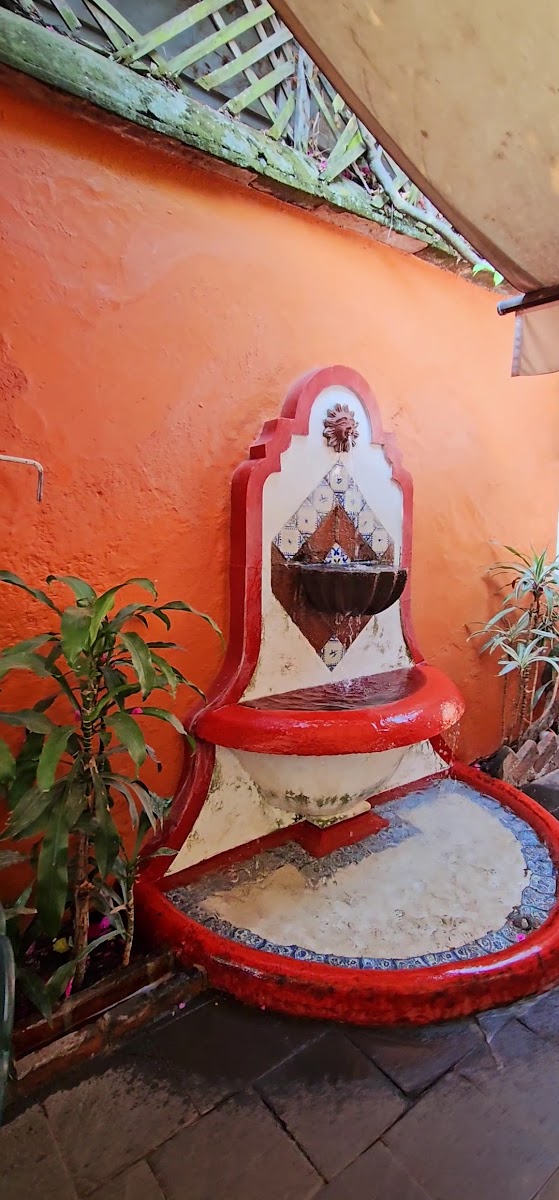 We enjoyed our soups (sopa de carne and tortilla soup) and main dishes - the cecina was delicious. There are many nooks to sit and enjoy the garden, bar or fountain from while listens to the birds.