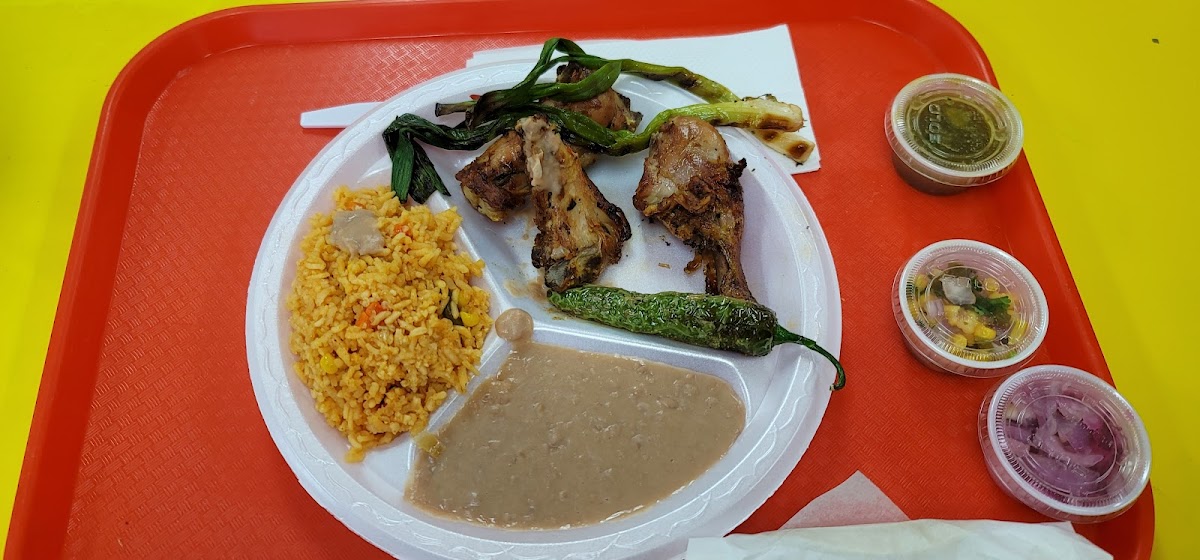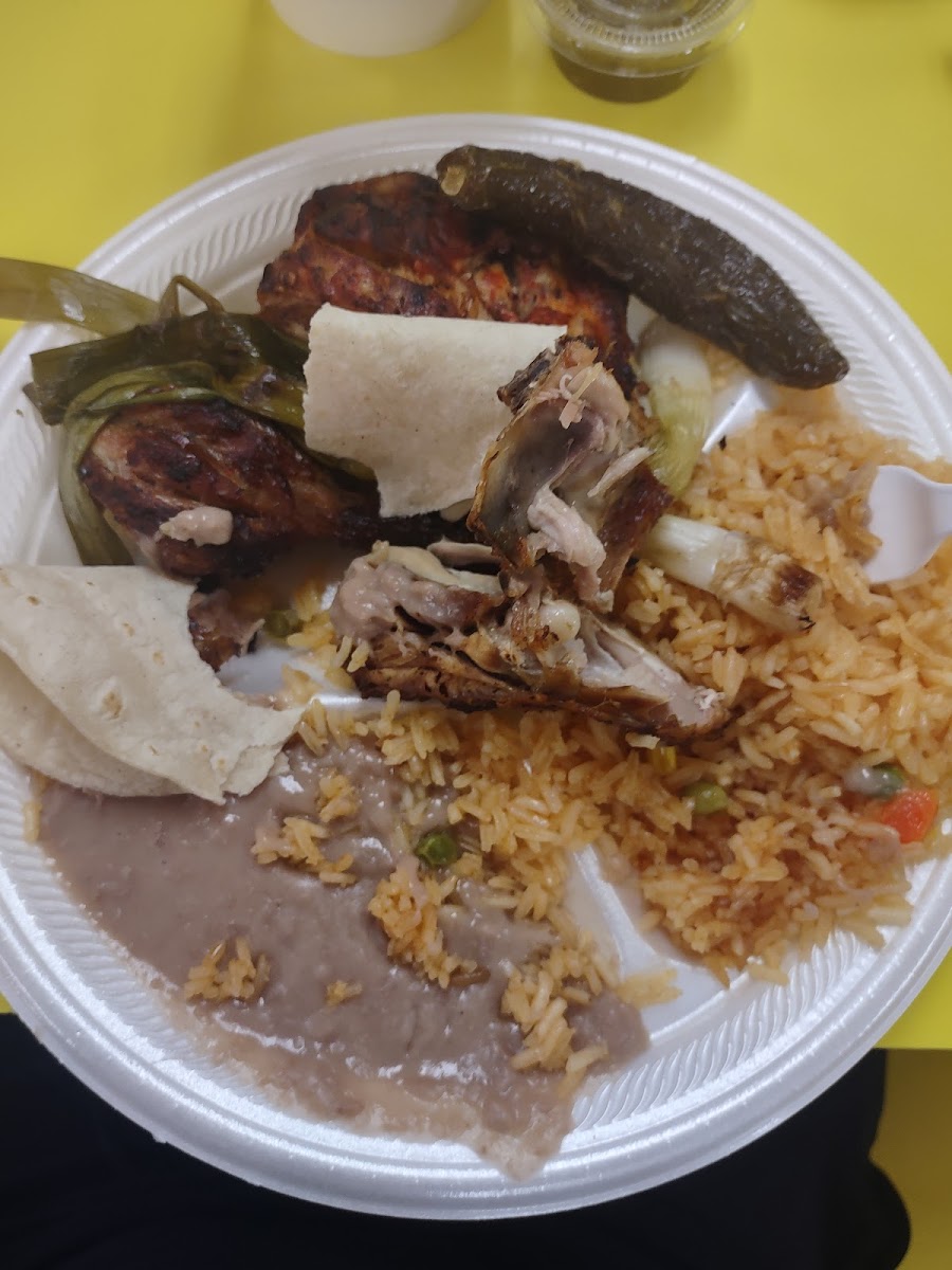 I always get the half pollo, comes with beans,rice, corn tortillas and salsas, jalapenos too. The chili cheese fries are good,does have a spice kick to it so grab a agua de limon