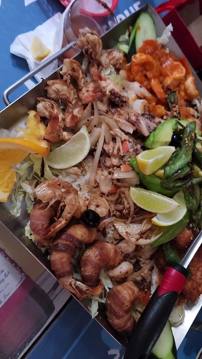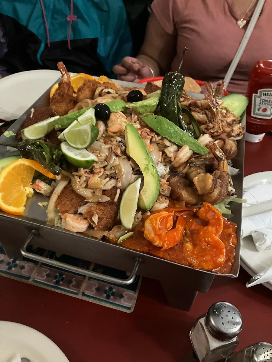 I'm so glad I finally made it to this Mexican eatery specializing in seafood after passing by it in favor of the Tokyo Steak place next door many times. We got the Parrillada de Marisco for 2 which is a grilled seafood plate containing rice, pieces of fried fish, shrimp prepared at least 4 different ways, scallops, and other items in a bed of delicious rice. It's a seafood lover's delight and will easily serve 3 or 4 (there are even larger plates available). The restaurant also has chicken and beef dishes if you're not a seafood lover (one of us ordered a steak which was also good) . The staff was very patient with our many requests for melted butter, ketchup, and milk for the kids who were foolhardy enough to bite into the grilled jalapenos (which were delicious if you took care to avoid the seeds). We left full and happy. Highly recommended and it's a great place for families.