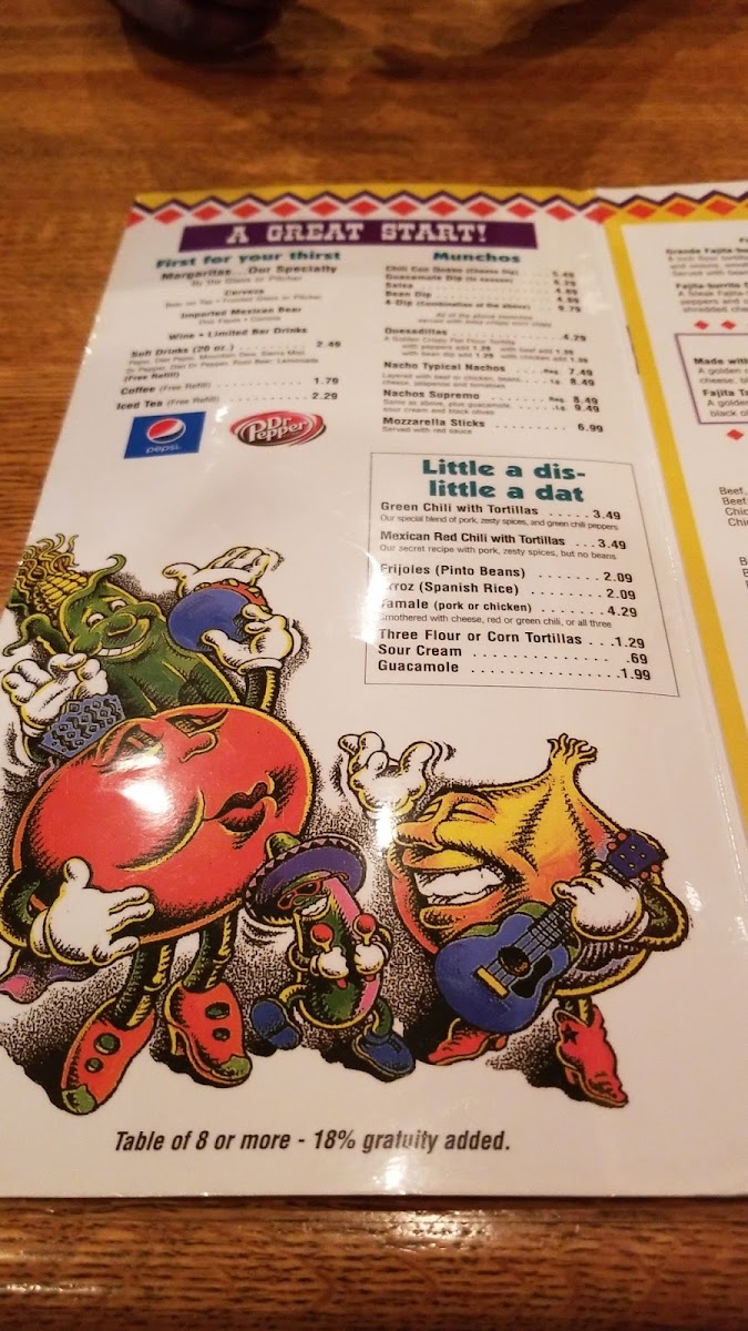 An 8 inch flour tortilla filled with seasoned fajita steak or chicken, sauteed green peppers and onions. Smothered with our famous chili sauce and topped with cheese. Served with beans and rice.