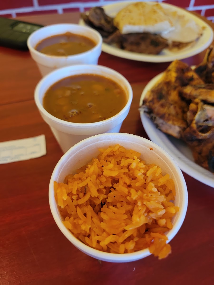 Pretty inexpensive. Chicken has a nice Smokey flavor. The beans are to die For. The hot sauces are magnificent