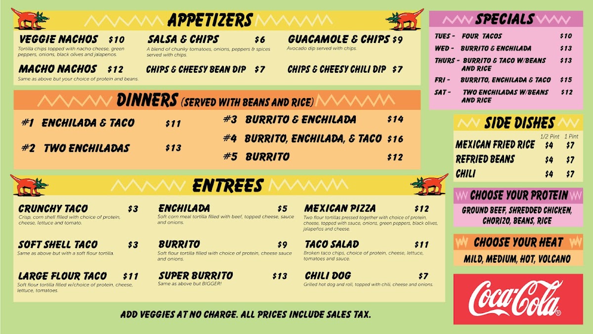 Two flour tortillas pressed together topped with your choice of protein, sauce cheese, green pepper, black olives, & jalapeños.