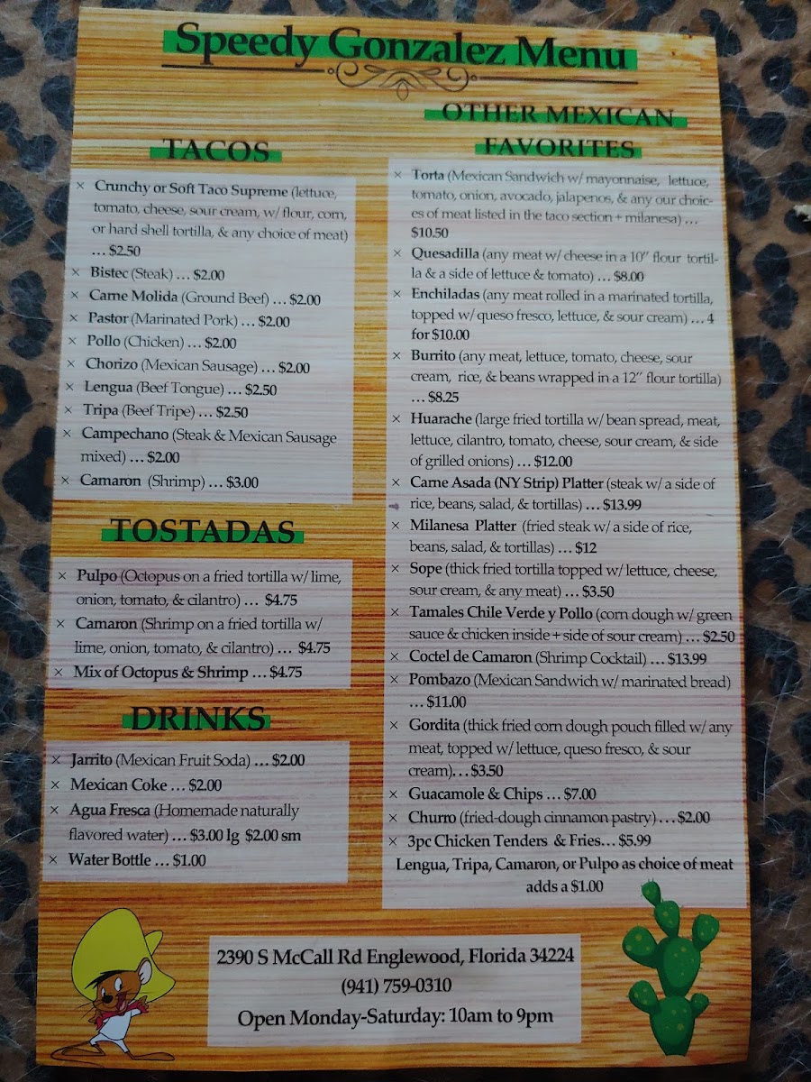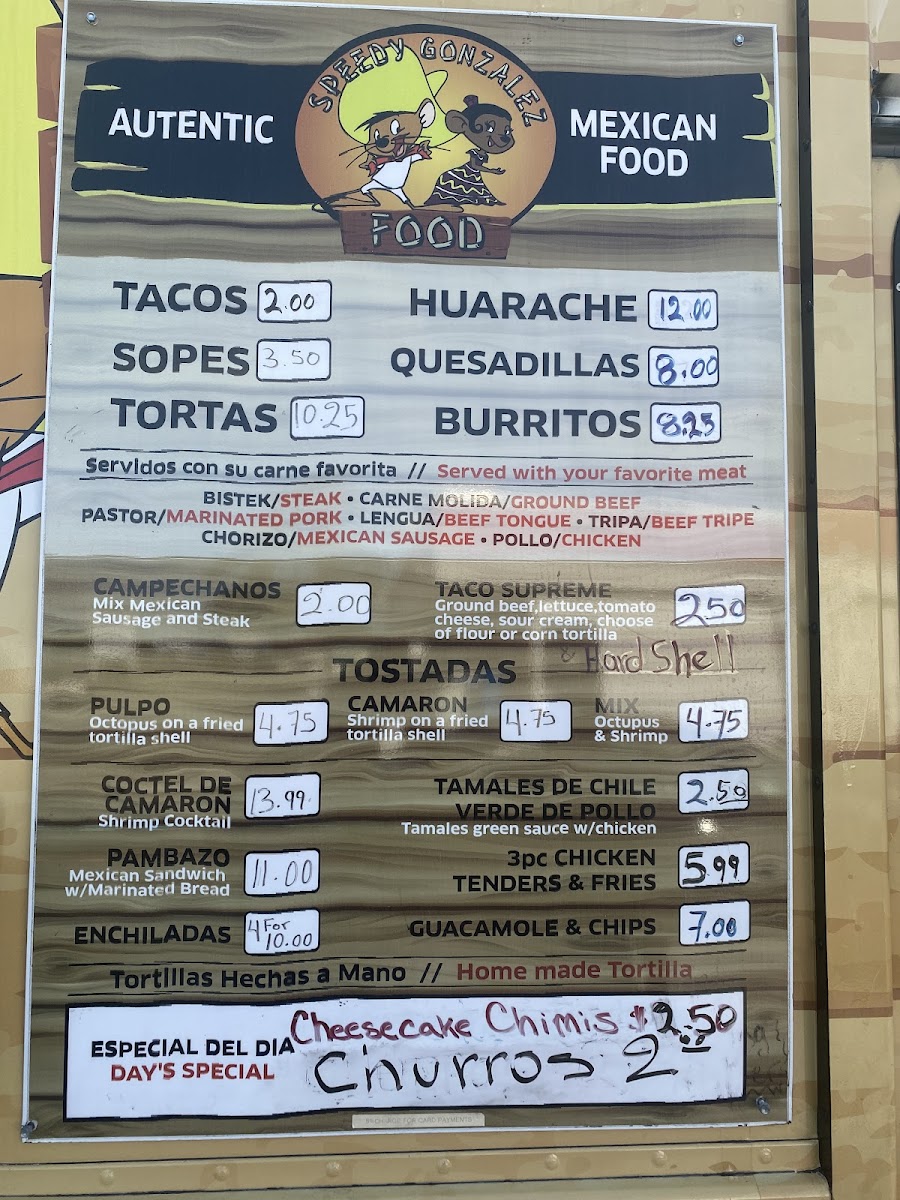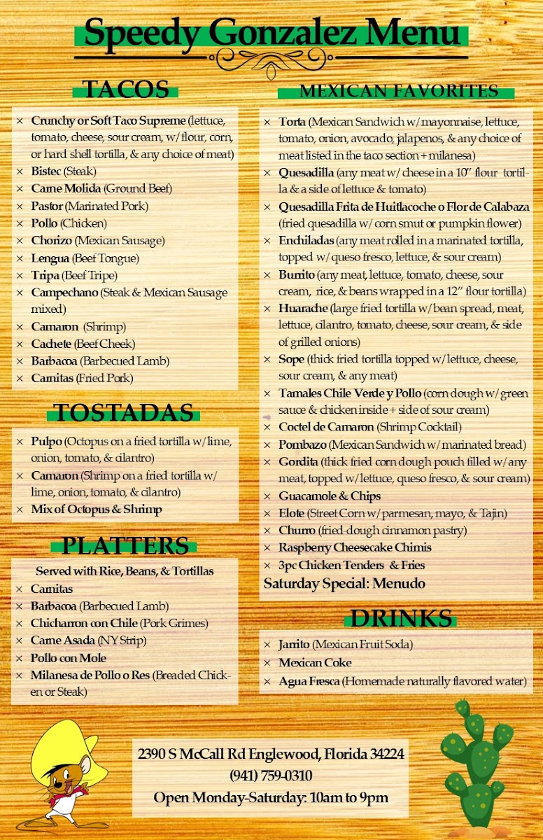Any choice of meat, cilantro and onions on a flour, corn, or hard shell tortilla. Served with a side of green or red salsa and limes.
