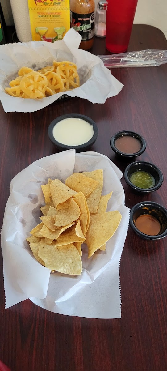 Stopped in to try this local restaurant and we were not disappointed. We started with the white queso dip and tried the salsa bar. The ones that say hot are definitely hot but all the salsas were pretty tasty Next we had the carne asada chimi and asada and barbacoa empenadas. Really. All in all very tasty and flavorful food. Glad we stopped.