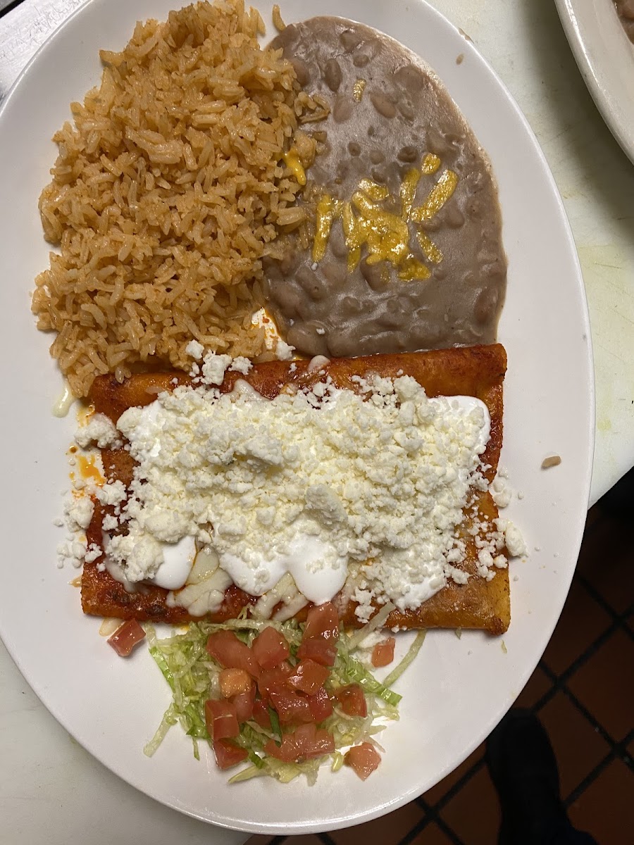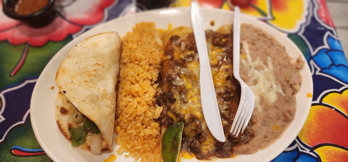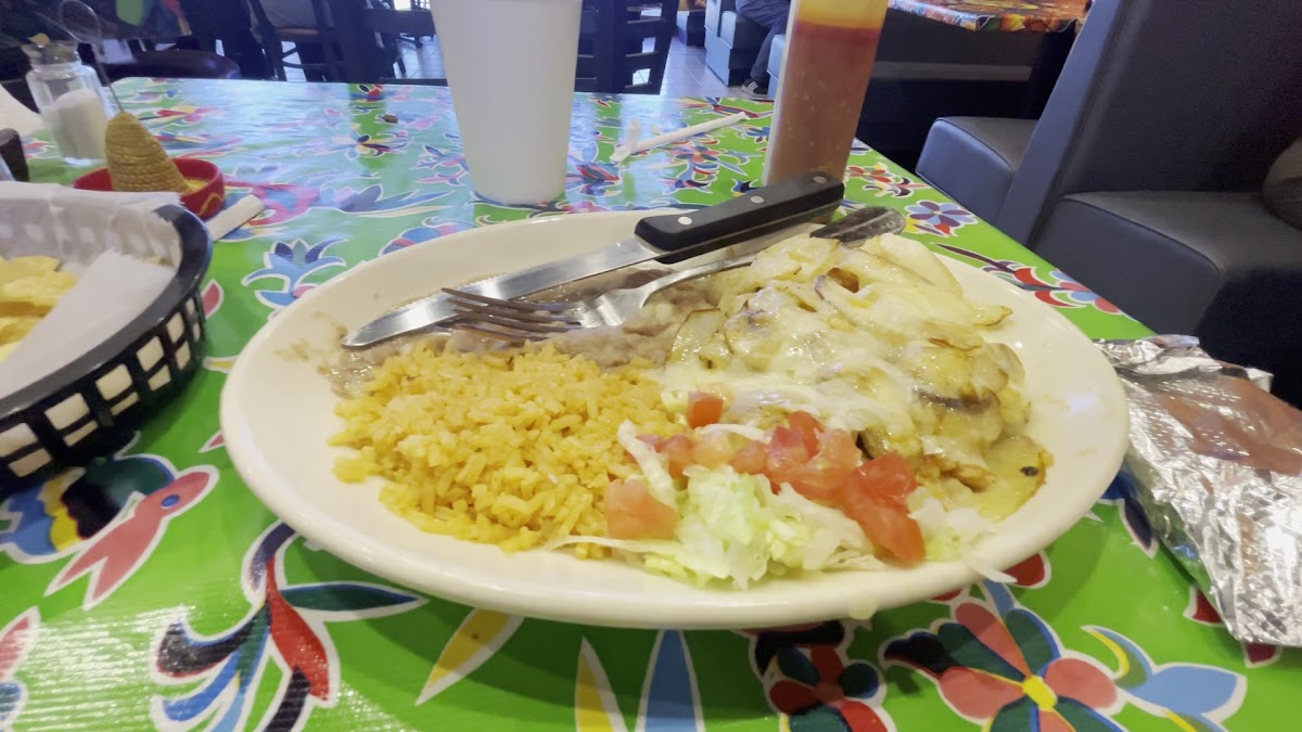 Wanted some enchiladas and this place really hit the spot. They brought out chips and salsa after I ordered. The salsa was good, had a nice spicy kick to it. I got the cheese Texmex Enchiladas with queso sauce. It ended up being exactly what I wanted. The rice and beans were good too. Great lunch spot!