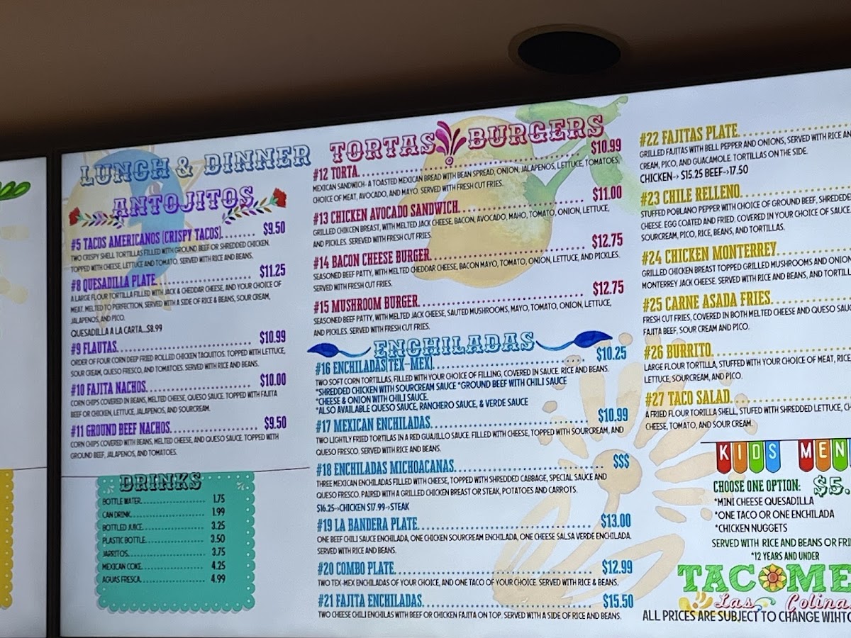 Two soft corn tortillas filled with your choice of filling, and covered in sauce, sprinkled with cheese and serve with Rice and Beans.