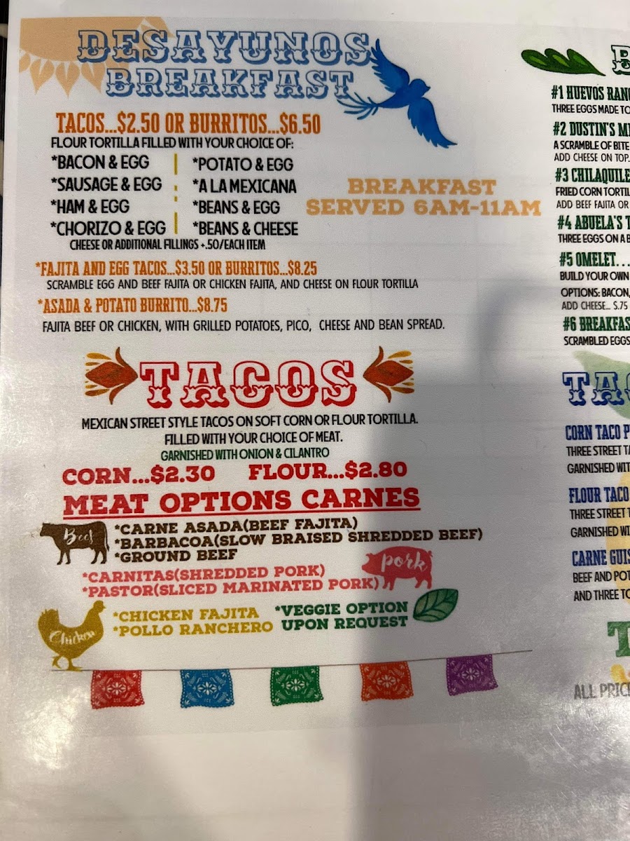 Two eggs made to order, topped with salsa ranchera. Your choice of bacon ham, or sausage served with beans homemade potatoes and three tortillas.