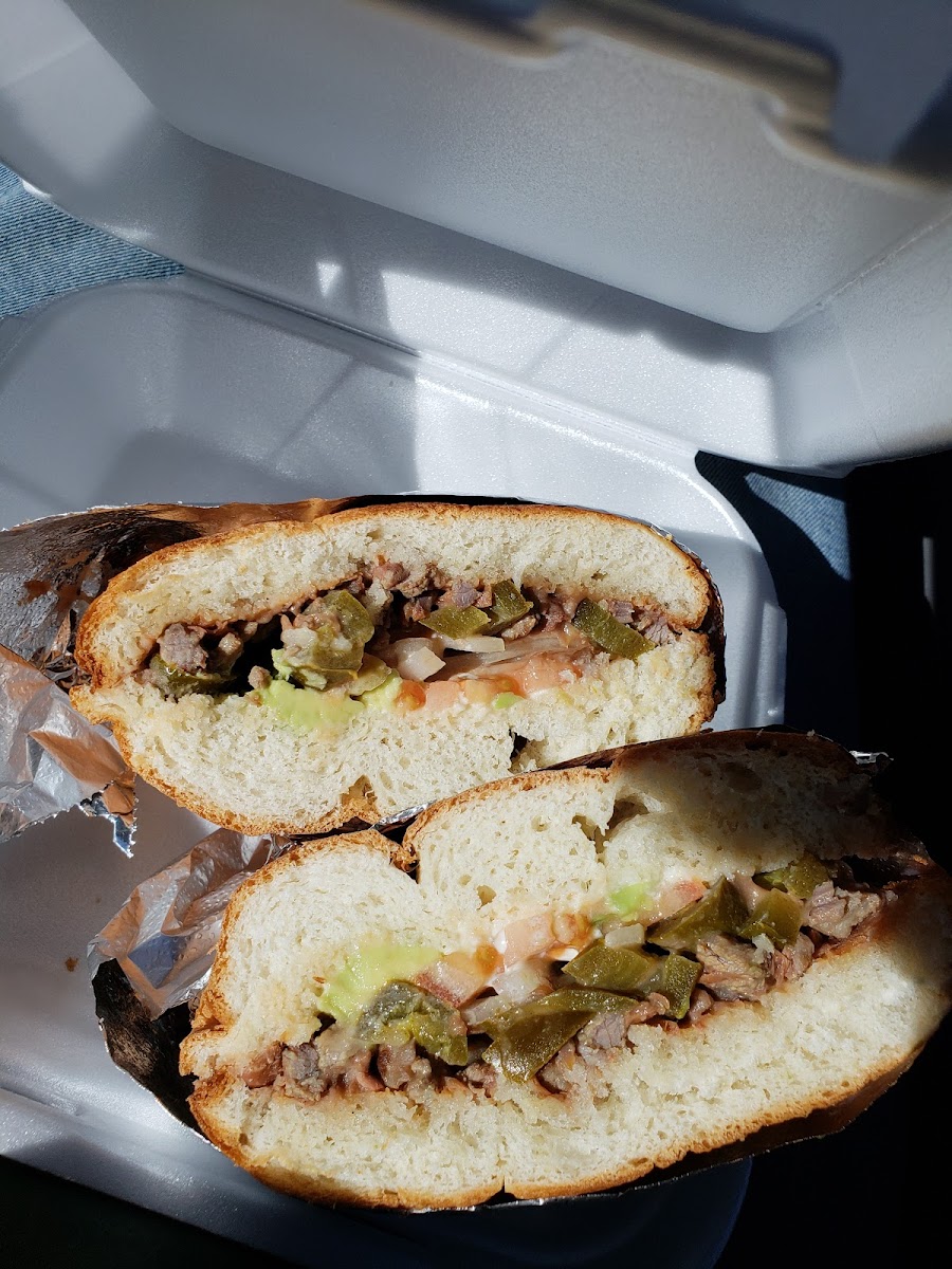 My husband ordered a torta de pastor and he loved it . I ordered a burrito de chorizo and egg and it was delicious , super big . The tamales de elote bomb and you can get free frijoles de charro if you eat there . They’re delicious as well . Not disappointed at all .