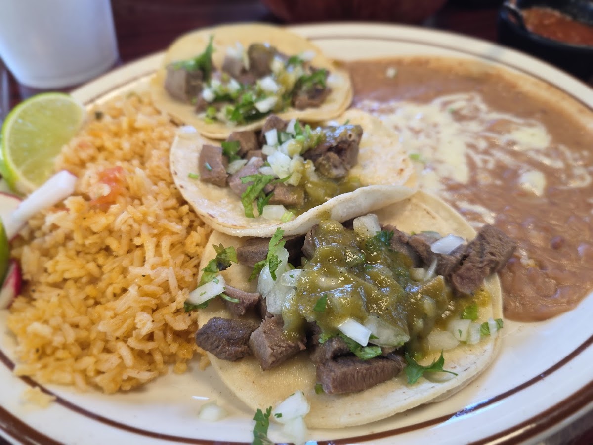 First visit, came highly recommended. I had the 3 steak taco plate. Very authentic look and taste. I thought it was a bit bland as I like a strong flavor. The value was pretty good. Parking can be a bit tight at peak times.