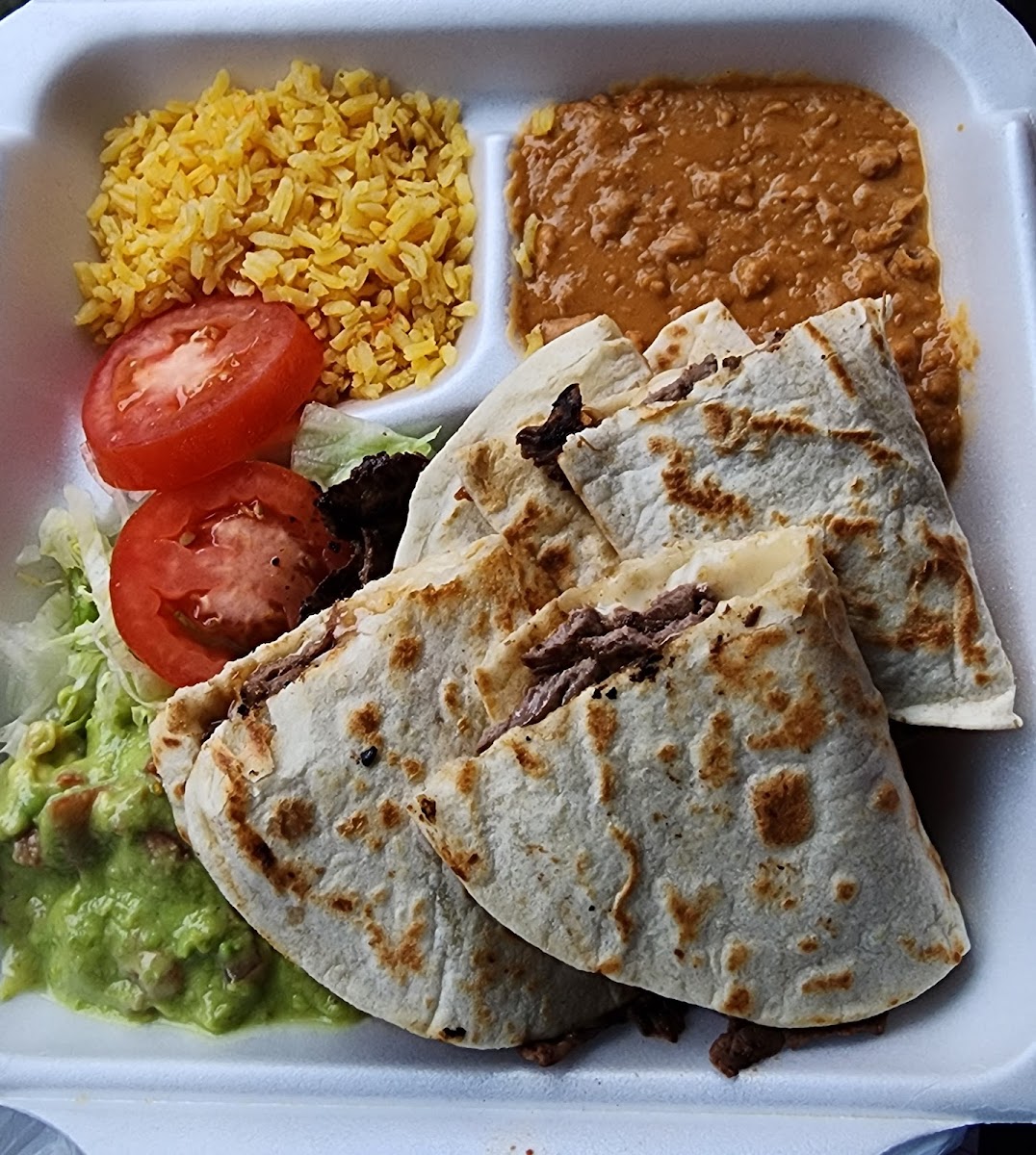Amazing Mexican food and authentic. Rice and beans were great. Not expensive. Visiting and originally from SoCal. We loved the torta and the fried tacos. Would go there again. Takeout/drive through only but they have tables outdoors.