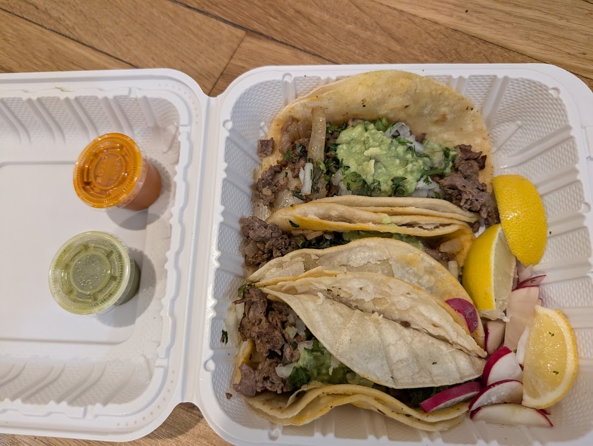 Price is good, food is hot and tasty! Very satisfied!! Please try their beef and chorizo tacos. They are so good! The flavours and the smell Looking forward to trying their Birria as well (only in the weekend)