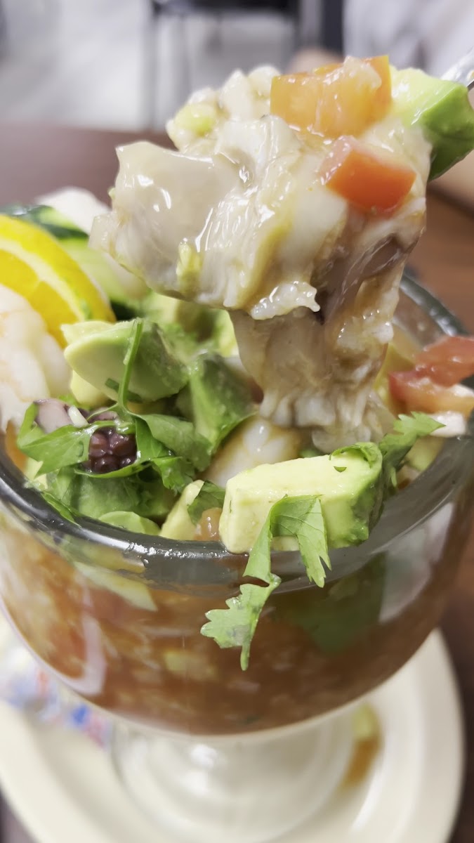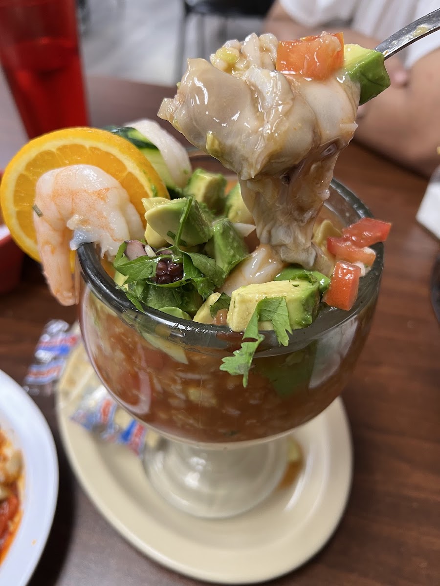This meal was awesome! I think the name was: Leche de Tigre, witch is basically spicy seafood mixed soup! I think this is a very unique plate since it was the first time trying something like that, and that is something. That it can be appreciated!