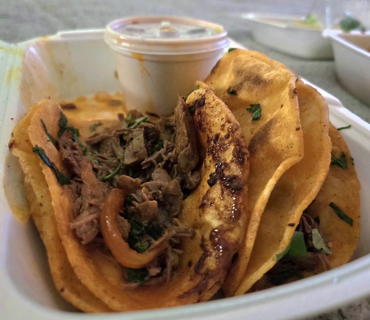 I always love going to this place to get my tacos this time I ordered tacos to go and I got one empty taco. This is the second place that I ordered tacos and they give me one empty taco. I would understand if they gave me all my tacos and just gave me an extra empty one maybe to put my meat in but I ordered 5 tacos, but I got 4 with meat and one without meat