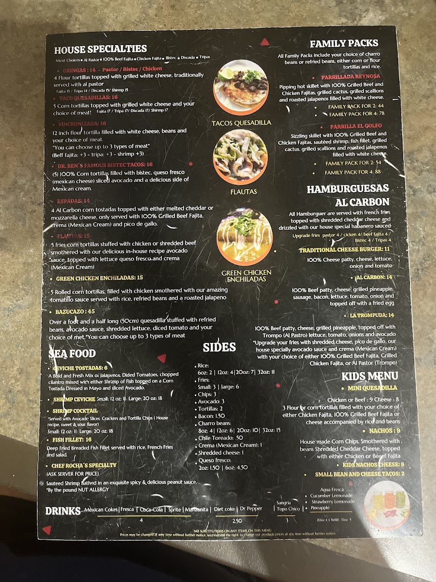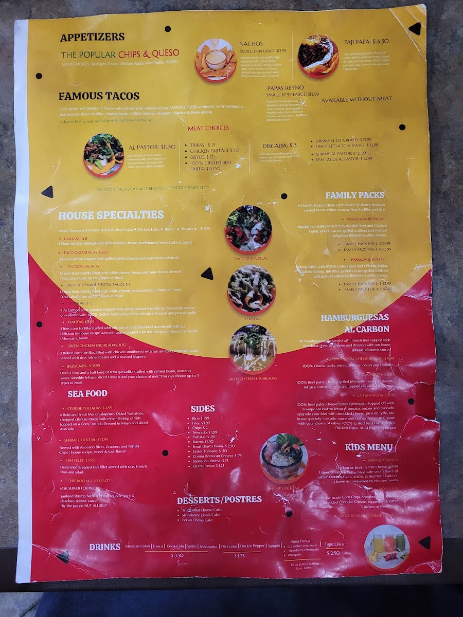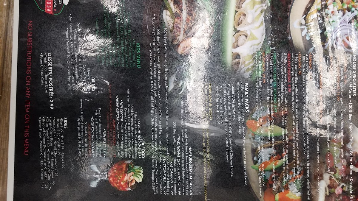 Pipping hot skillet with 100% Grilled Beef and Chicken Fajita, grilled cactus, grilled scallions and roasted jalapeños filled with Mozzarella Cheese! *All Family Packs include your choice of charro beans or refried beans, Rice, and your choice of corn or flour tortillas.*