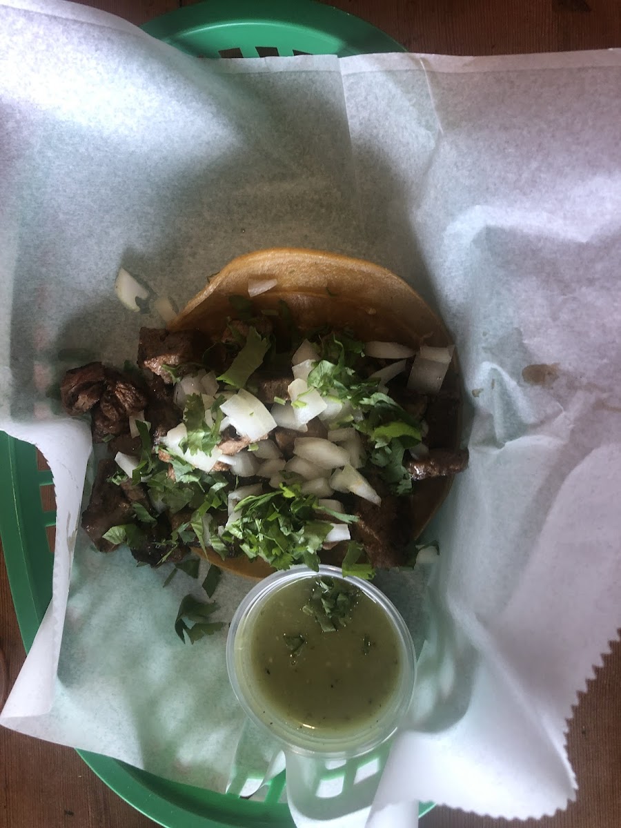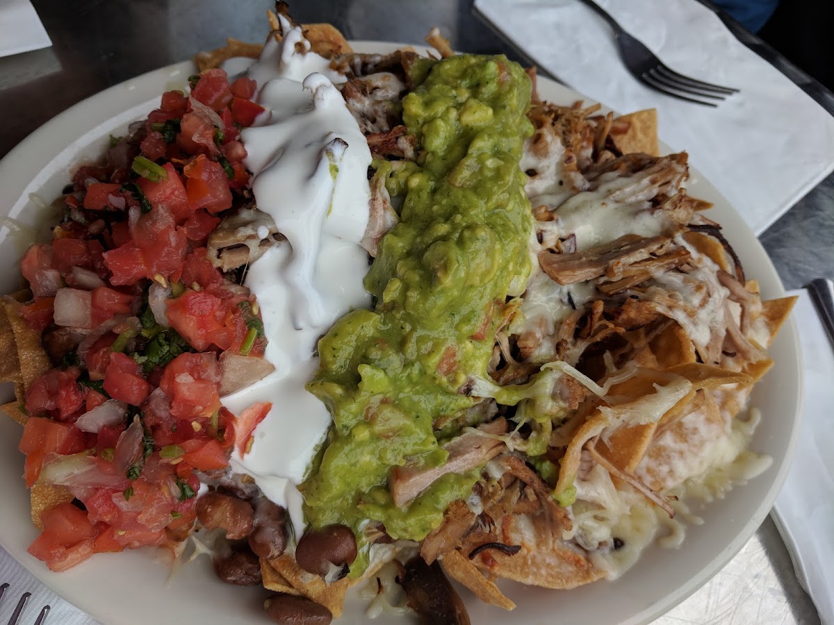We found this place by looking for some place to eat on our drive down the coast from San Francisco. I had a burrito and my son had two super tacos, which he had to eat with a fork because they were so loaded. We also had some guacamole. If you eat there (tables are outside rather than inside), chips are complimentary. The chips were some of the best homemade chips I have ever had--not greasy at all.