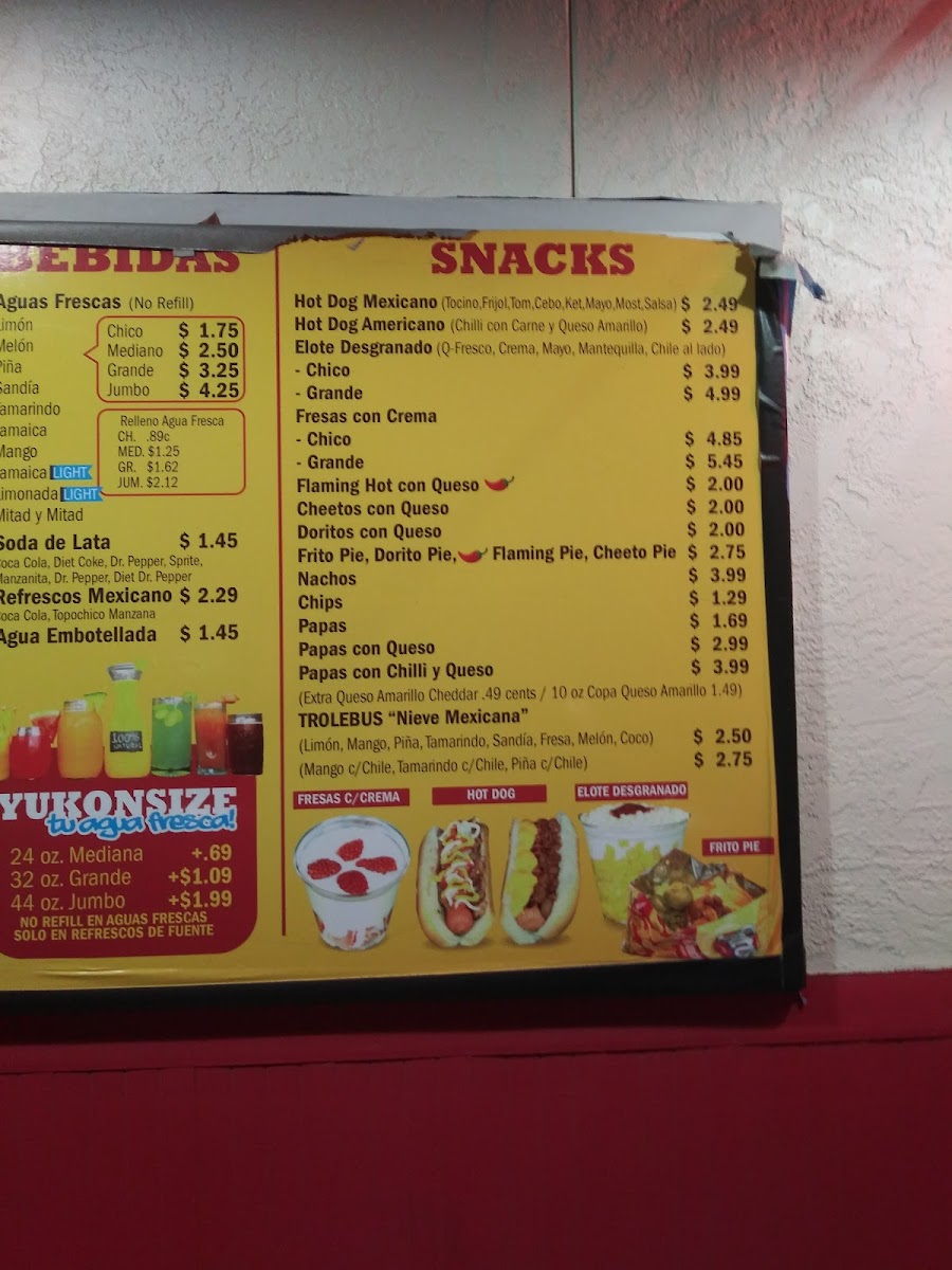 Incluye papas fritas, agua fresca o refresco. Lleva tomate, lechuga, cebolla, frijol, mayonesa y aguacate