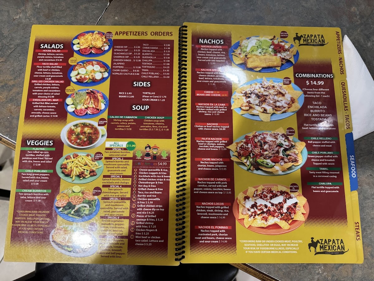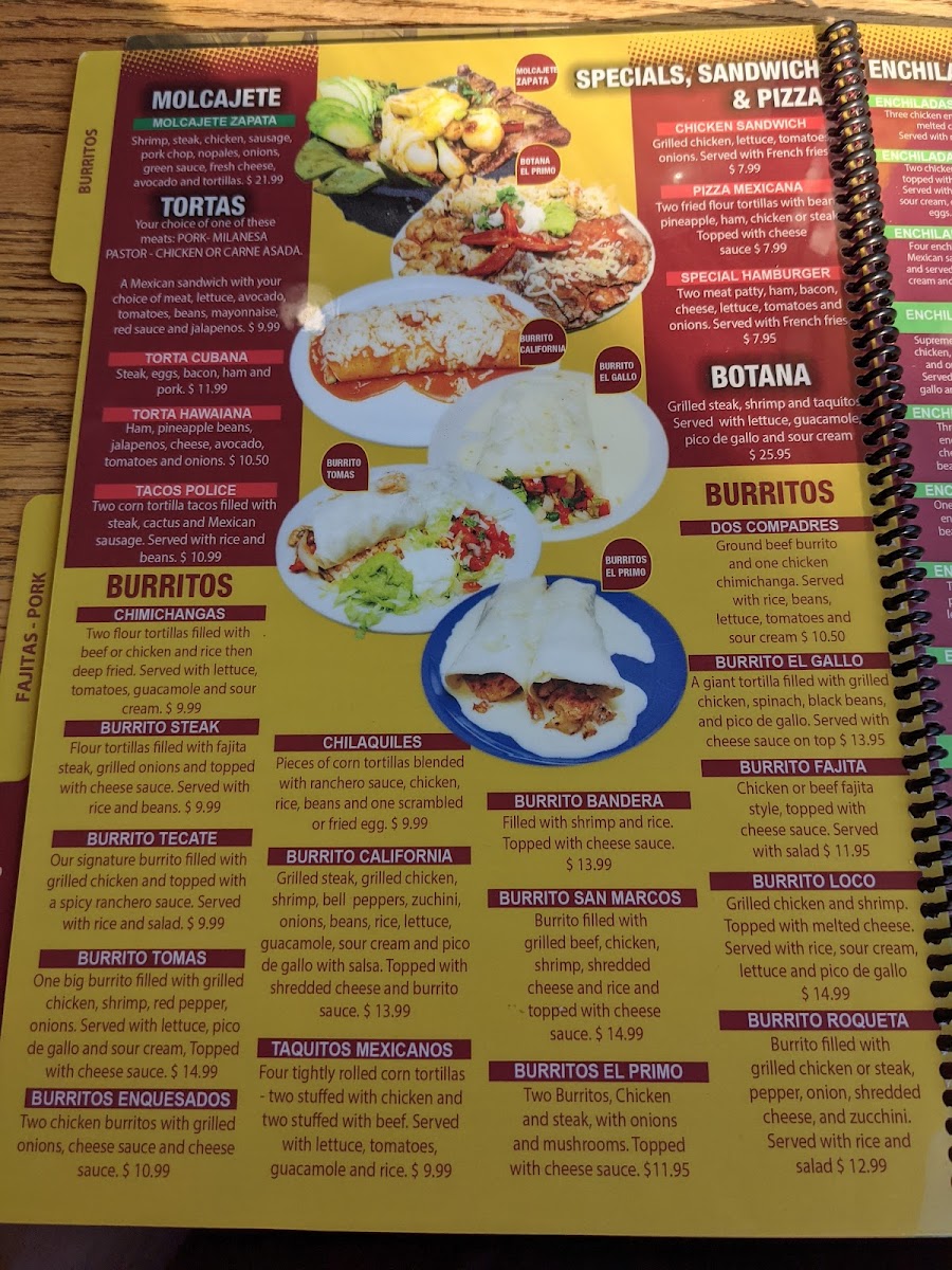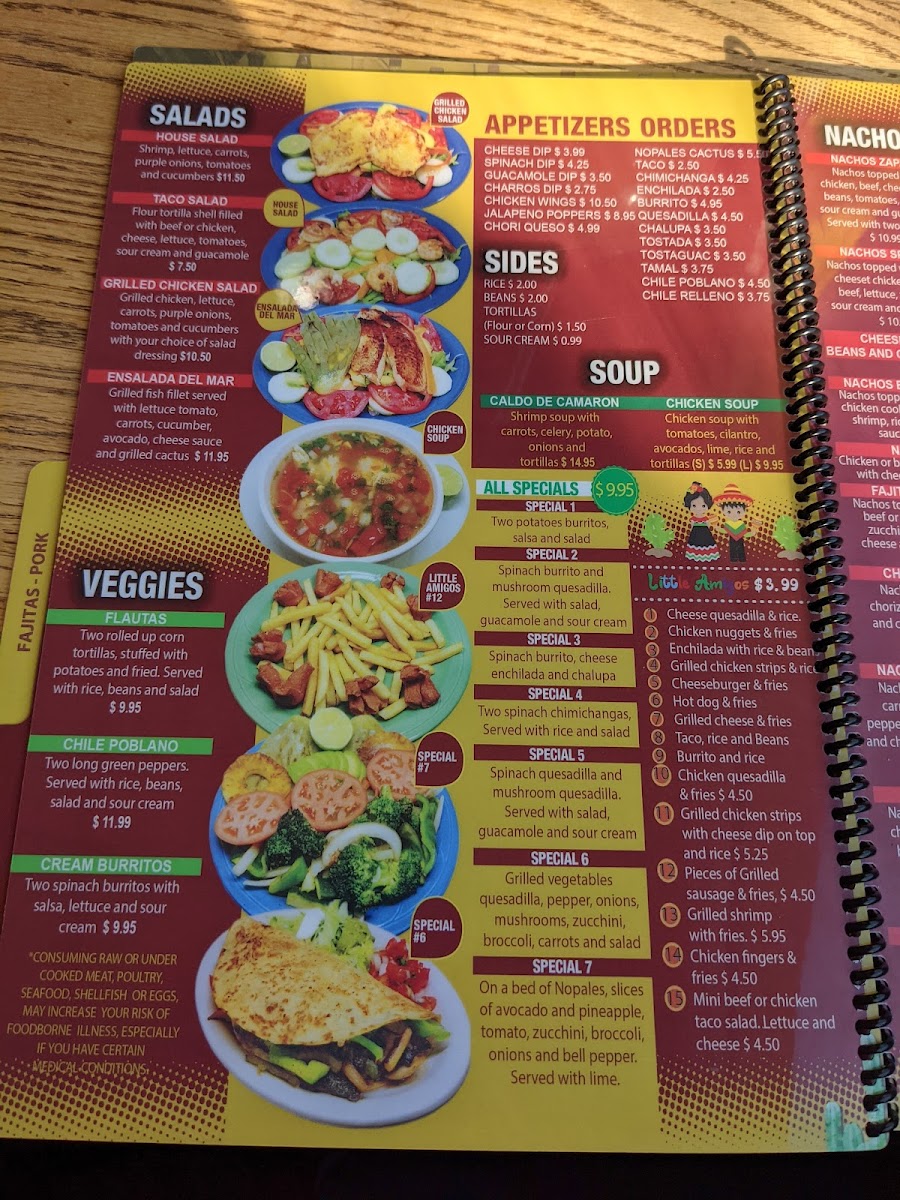 2 long green peppers. Served with rice, beans, salad, and sour cream
