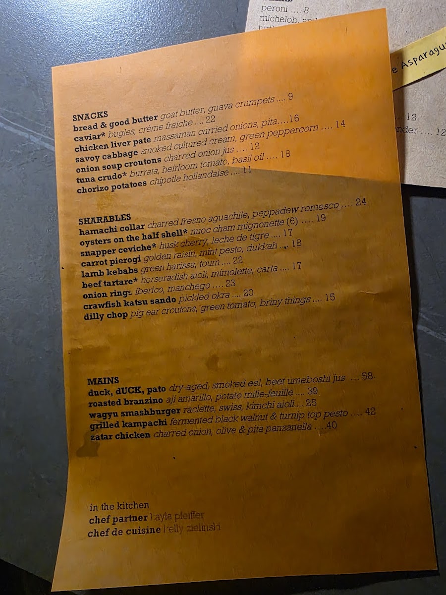 Duck Legs rubbed with BBQ spice blend, crispy shoestring potato chips, finished with caramelized duck burnt ends, ham, Swiss cheese, mayo, house pickles and yellow mustard pressed on Cuban bread