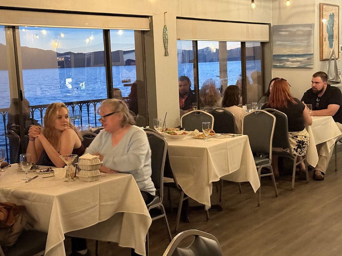 The food was delicious and our server Jake was fantastic. We ate salad then sea bass with asparagus and mushroom risotto for main dish then coconut sorbet. It was all excellent and delicious. There was a large group of us and we had a reservation for 7.30pm which was perfect for a beautiful sunset. The restaurant was extremely busy and they seemed a bit short staffed so it took some time, although it was worth the wait! Our server Jake went over and above to make sure we had a really great evening and felt supported. Perfect setting with the sunset and lake views. Thank you!