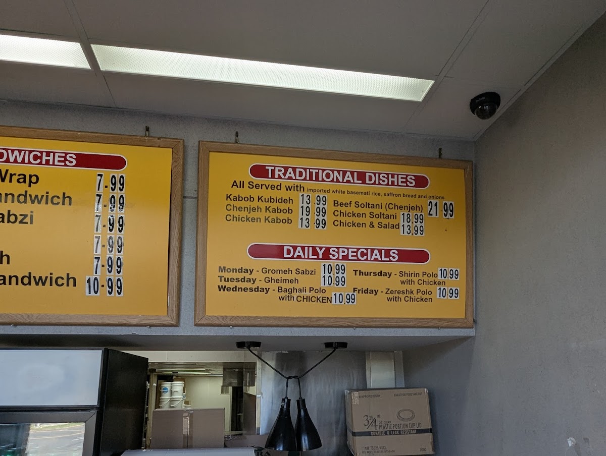 tender slices of gyro meat topped with tzatziki sauce, served open faced on tandorri naan, your choice of rice, vegetable, salad and tandorri naan (afghan bread).