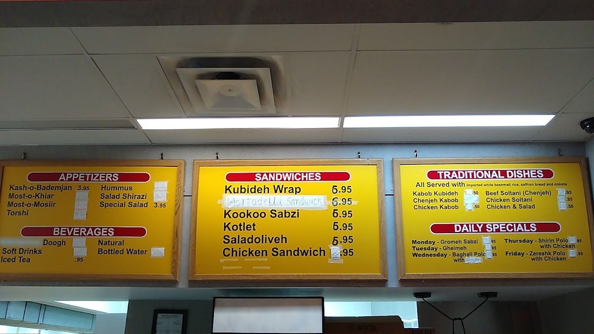 tender chunks of lamb, under a heaping portion of seasoned rice topped with gyro meat and tomato based meat sauce, served with salad and tandorri naan (afghan bread).