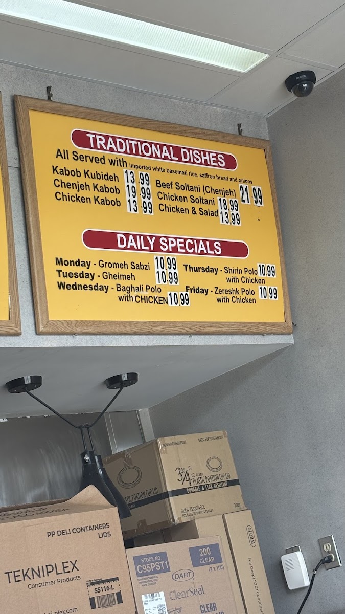combination of beef and lamb delicately seasoned, topped with tzatziki sauce, servedd with mixed greens in a tandoori naan (afghan bread) and a side of vegetables.