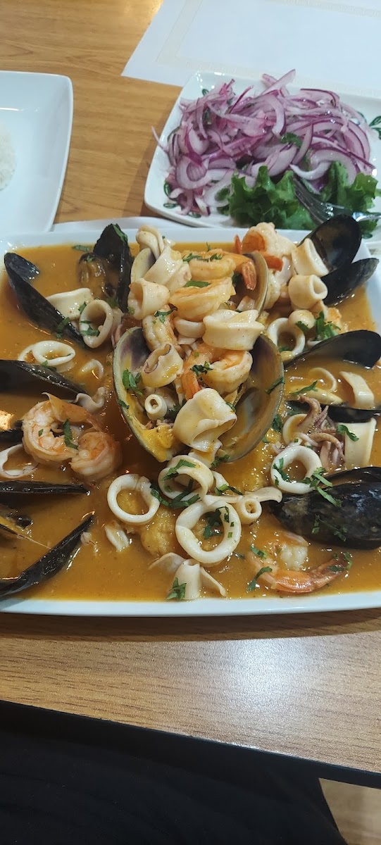 Filete de pescado a lo macho, excelente y una cantidad excepcional. Great place, as always. This seafood dish was prepared perfectly with every element cooked and seasoned to perfection. Portions are large, but food is exceptional, don’t be fooled by competitors. This is the Peruvian place to try. Drinks are great. Dollar for dollar you get the best dining experience here. I don’t even know these people, but I know food.