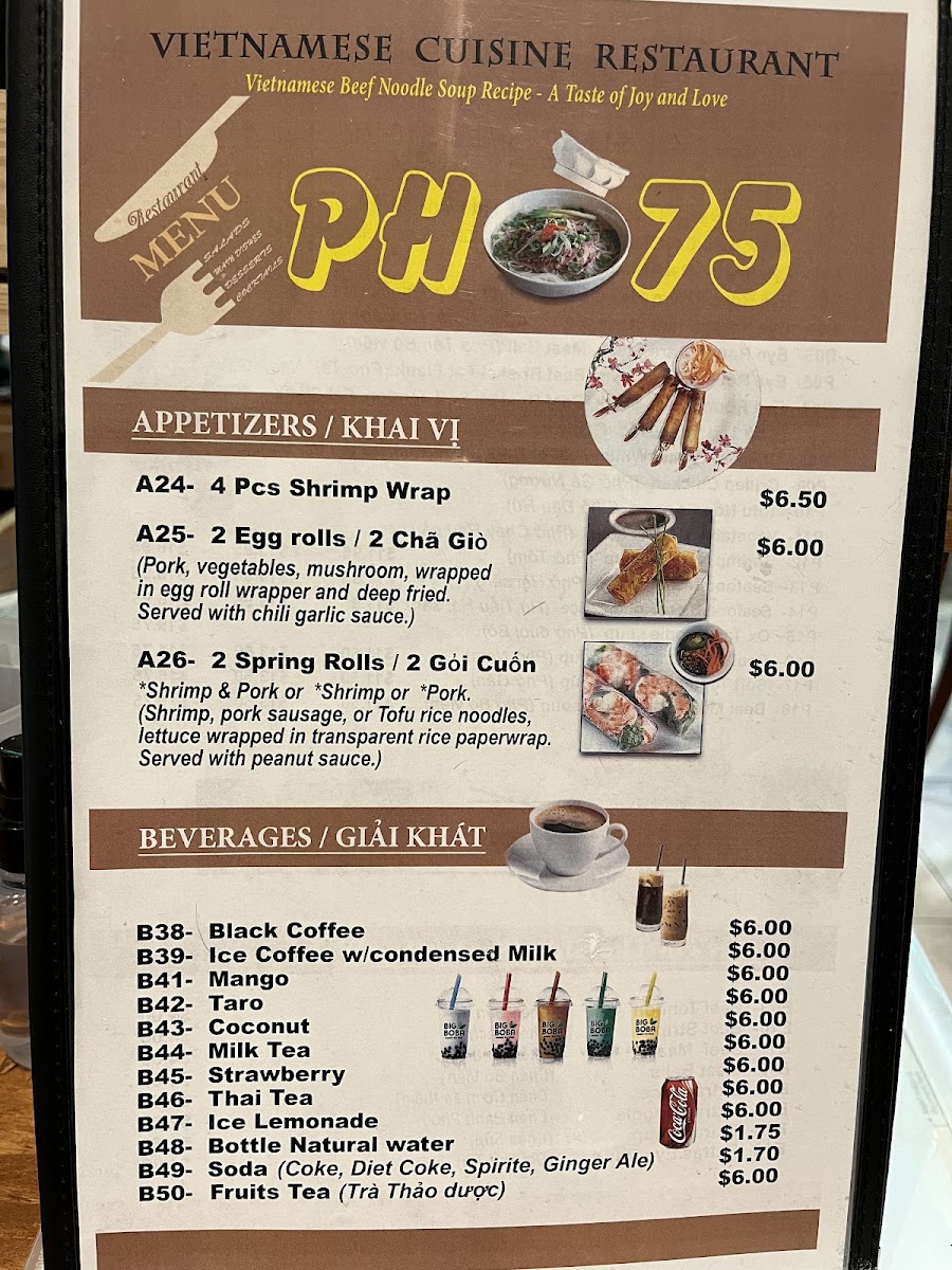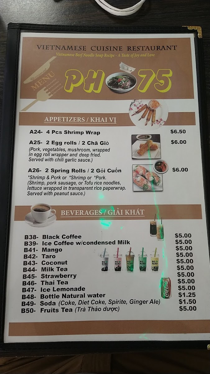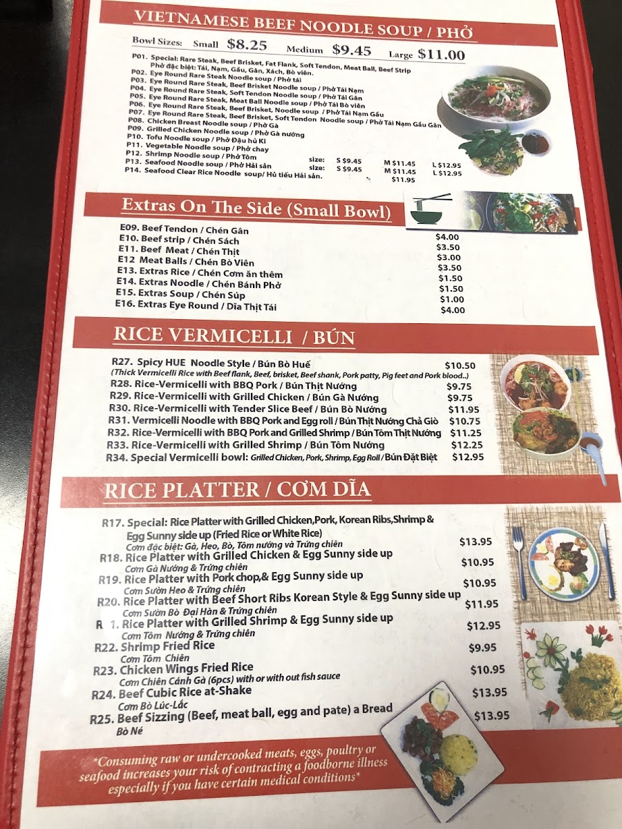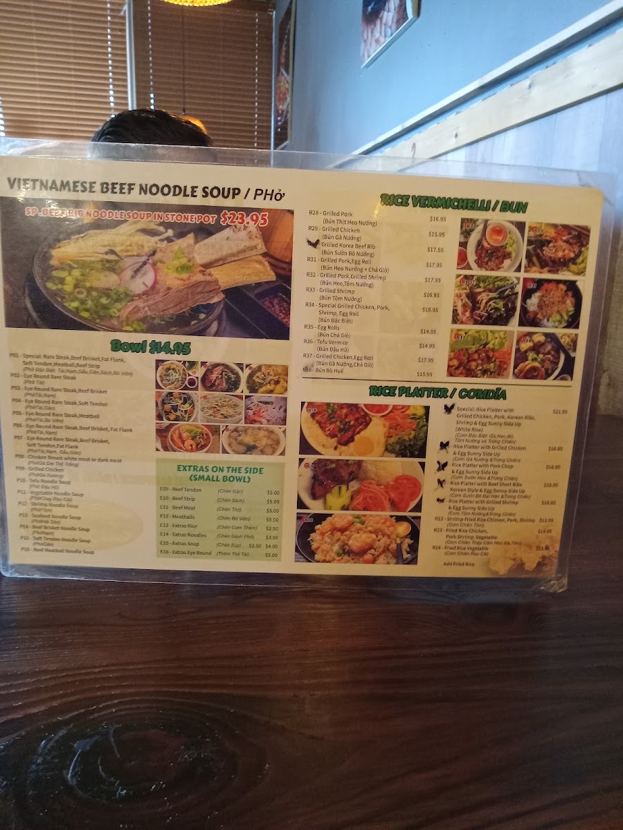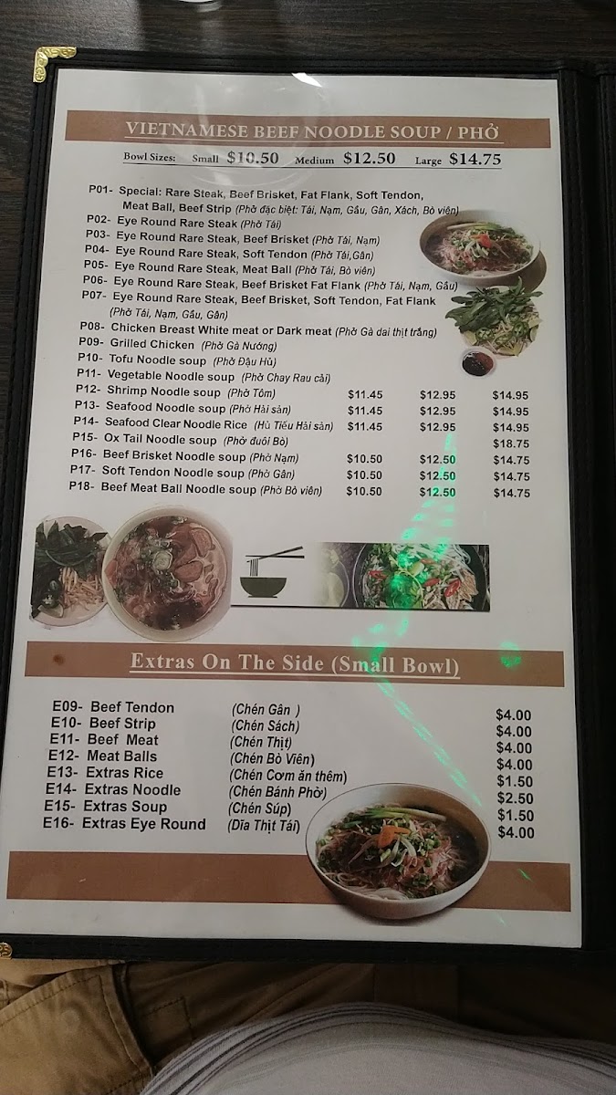 serves with beef bones stock with Vietnamese rice noodles on the top of onions and cilantro and side of bean sprouts with jalapanos,culantro ,basils and lime.