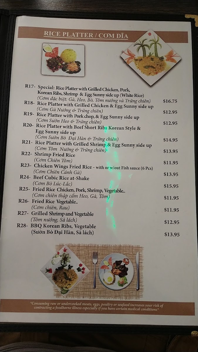 comes with original thai Jasmine Rice with peas and carrots with the egg , grilled pork,chicken and shrimp .