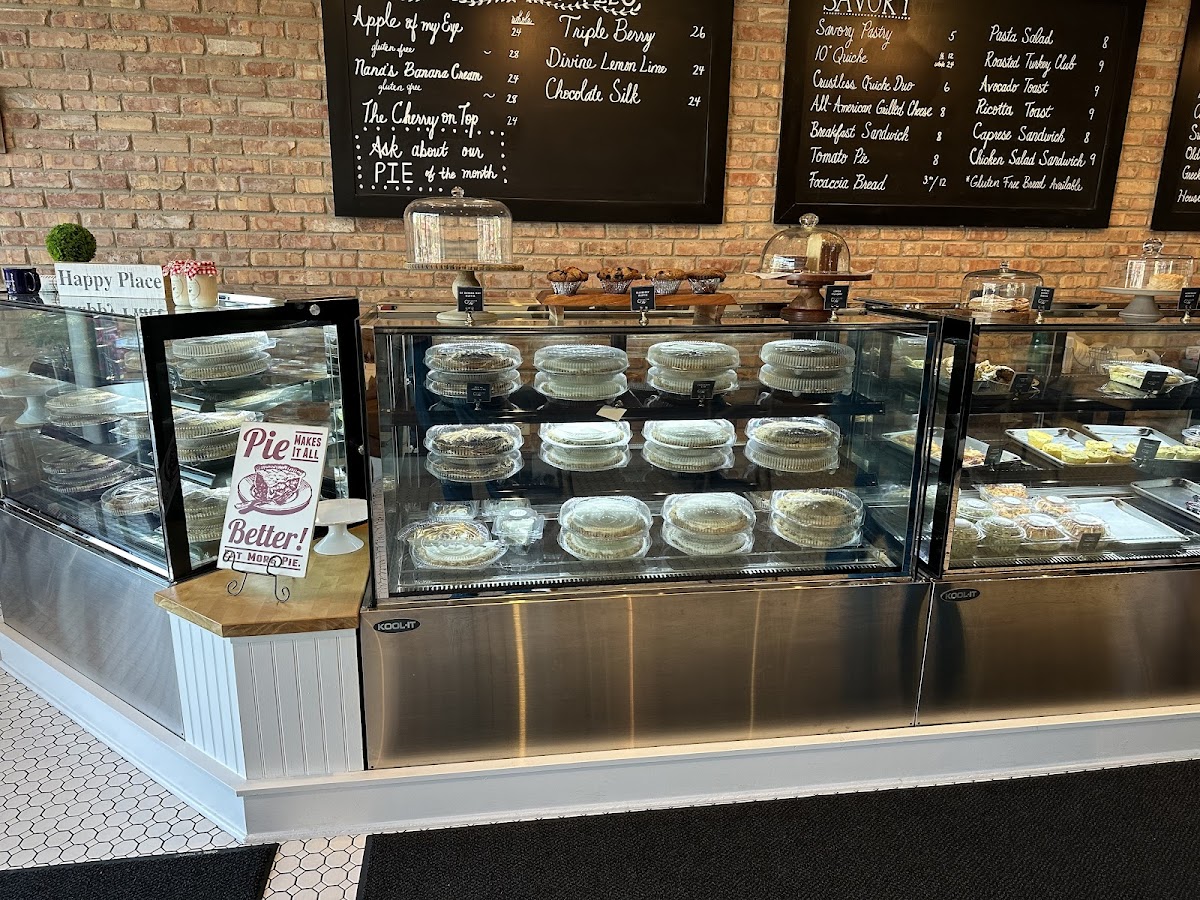 Such an adorable little shop to visit!!! The ambience is perfect (clean and inviting atmosphere) - the staff is very helpful and efficient and the pie was FRESH AND TASTY!!! We enjoyed the Smoked Turkey Sandwich, the Triple Berry Pie and the Pie Of The Month - Strawberry/Rhubarb. The sandwich was freshly prepared - very tasty and served with choice of soup, salad or pasta salad. Excellent combination of flavors and I would definitely order the same again. The pies were both very tasty - scrumptious filling and very buttery flavor to the crust! I would highly recommend visiting for a nice cup of coffee or tea - a relaxing lunch - or a slice of pie! Also, always nice to frequent a small, family-owned business. Definitely will return and try some more of their delicious offerings! YUM!