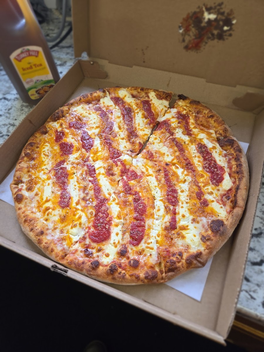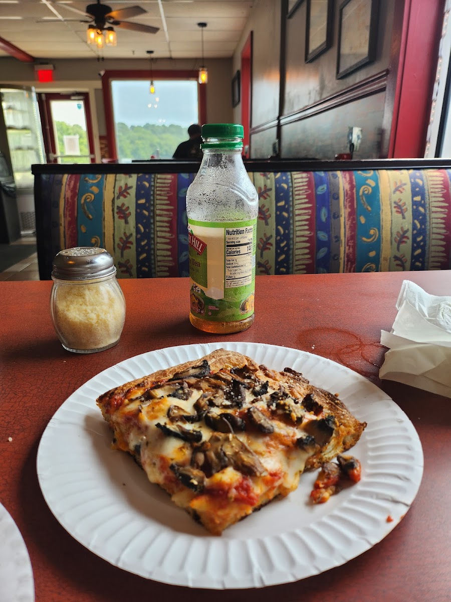 Cheese pizza was great. Service was friendly and prices are solid. Sitting down inside has a great old school mom and pop pizza place