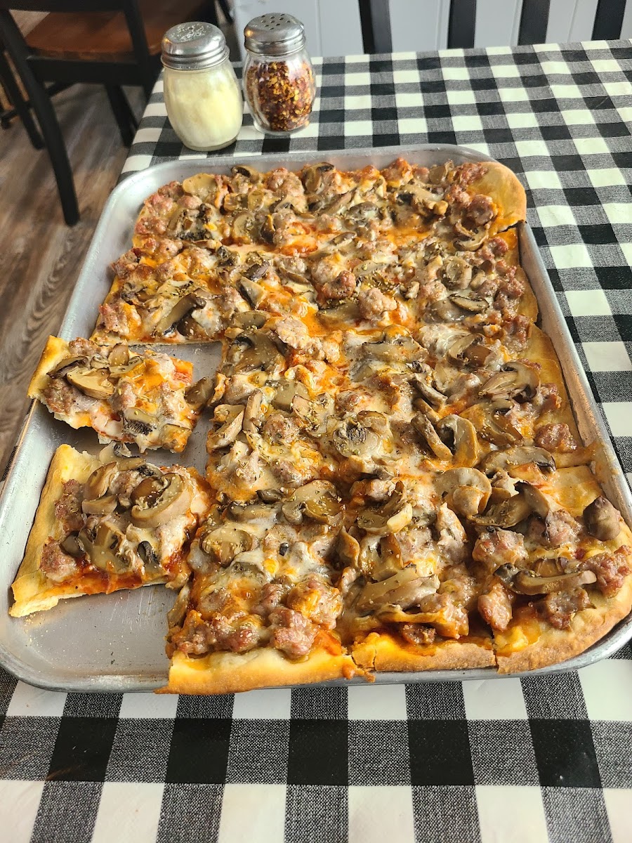 Best St. Louis style pizza around. Crispy and buttery thin crust, piled up with toppings. I had sausage, onion, and mushrooms. The way the cheese mixed a little with the pizza sauce gave it a bit of a creamy texture that was unique and very tasty. I also had the toasted ravioli that they hand make. It was very good as well.