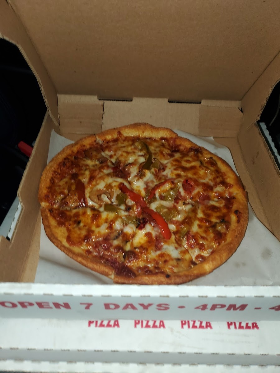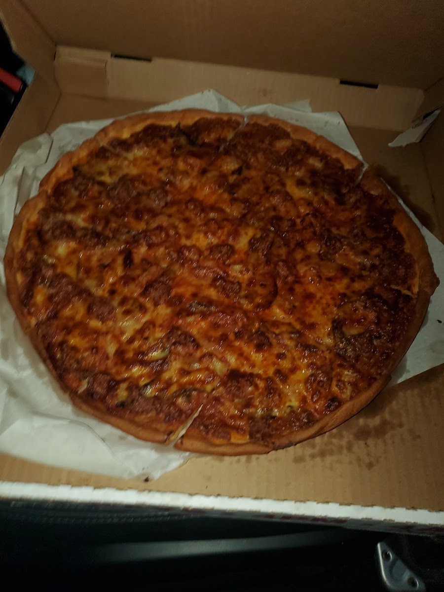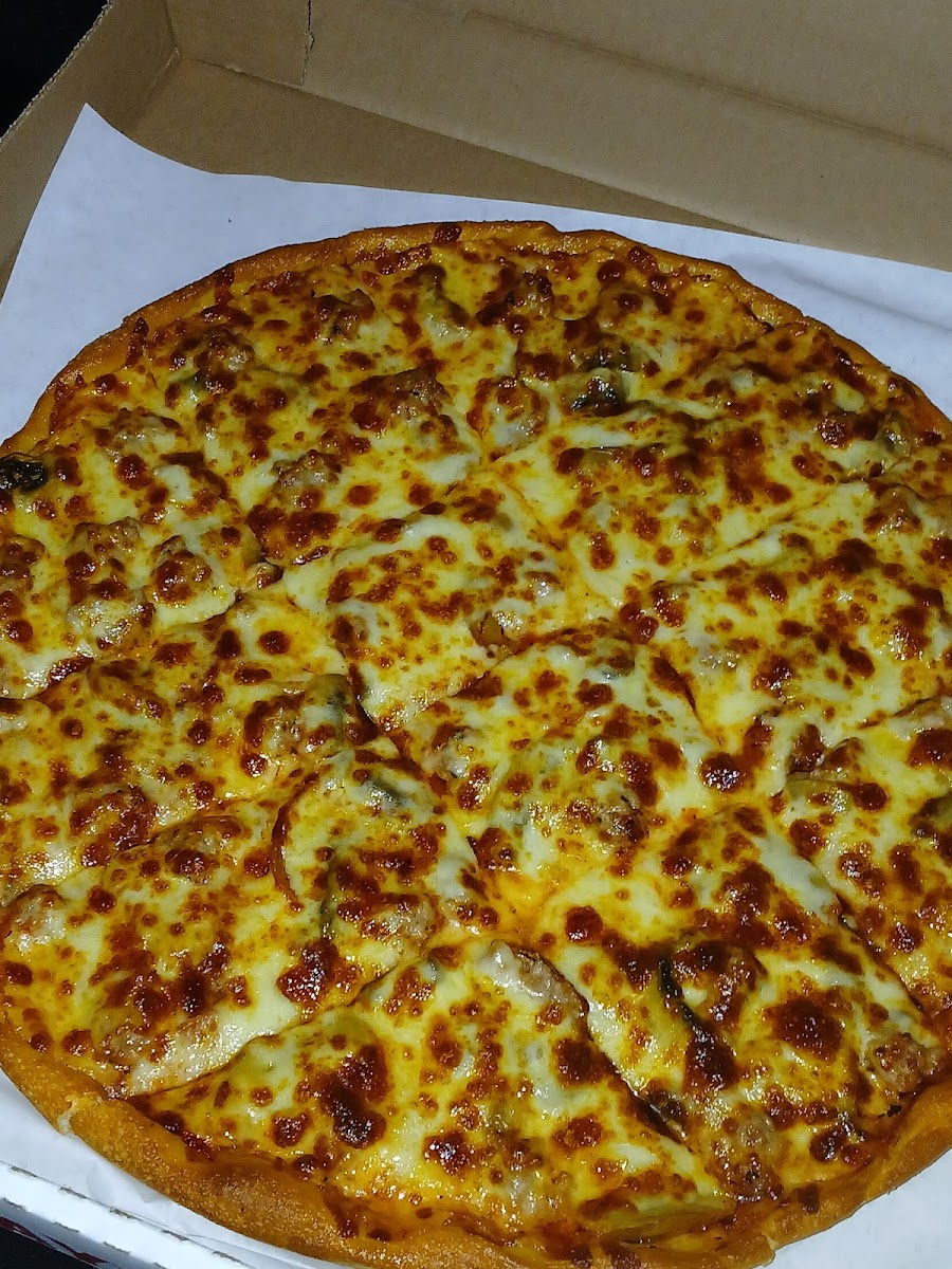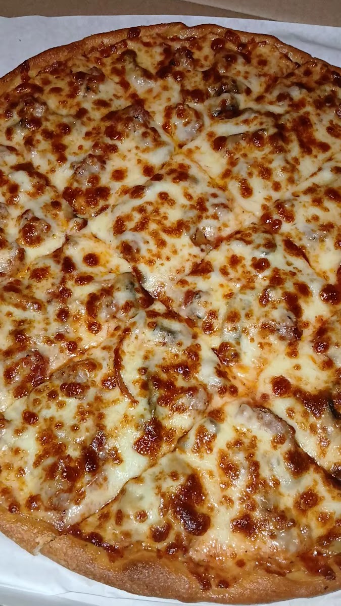 Pizza tasted amazing!!! Got a large 12 cut with sausage, mushrooms, extra cheese, & extra pepperoni. It was ready in 15 minutes. They only accept CASH ONLY due to customers scamming them via credit/debit card during the Covid Era.
