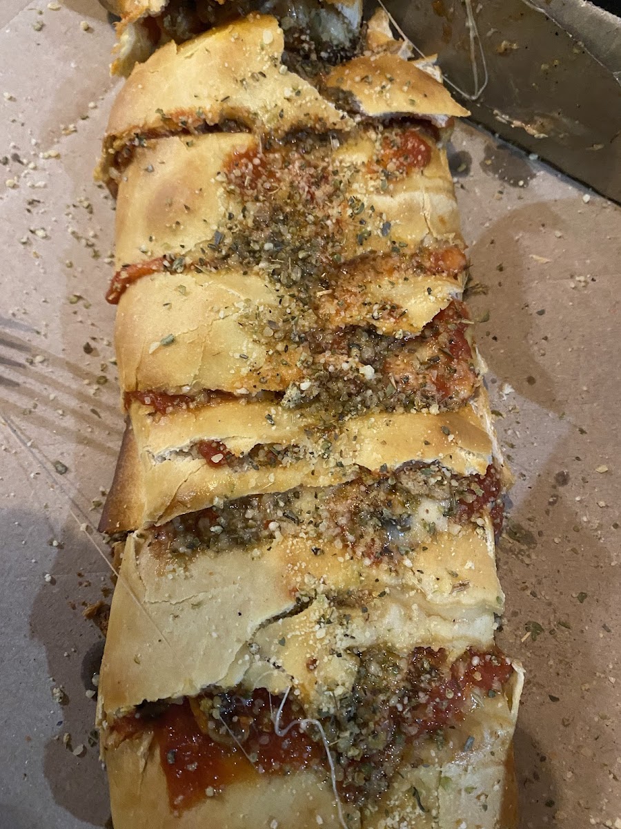 Offers an entire vegan menu. I got the calzone with mushrooms, vegan mozzarella, vegan salami, and marinara on the side. Kind of small, but really affordable at $5 and very tasty. Also tried the pickle pizza—I liked it! The cinnamon zippis weren’t bad, reminded me of Cinnabon. Also cheap—like three servings for $6. Bread “sticks” were okay, the vegan garlic butter was good. Total hole in the wall, but the service was great. Thank you Chris for your warm hospitality!!