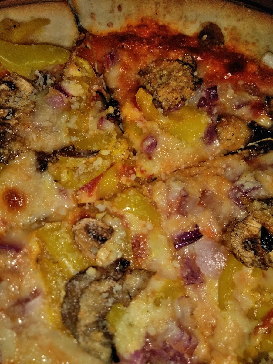 We went for the vegan pizza and it was delicious! The pizzas are so good and everything is so affordable. The restaurant might seem a little outdated but there was something very comforting and nostalgic about it. It’s got a lot of character and late 80’s/early 90’s charm. The owners are so unbelievably friendly and very proud of their pizza! We were assured that all cooking utensils are separate. Everything is wiped down and vegan is kept completely separate from non-vegan products. If it’s shared in the fryer with non-vegan foods they don’t call it vegan on the menu (there’s a separate menu for vegans and vegetarians). I highly recommend this place and go hungry because they have an awesome variety of options, including desserts!