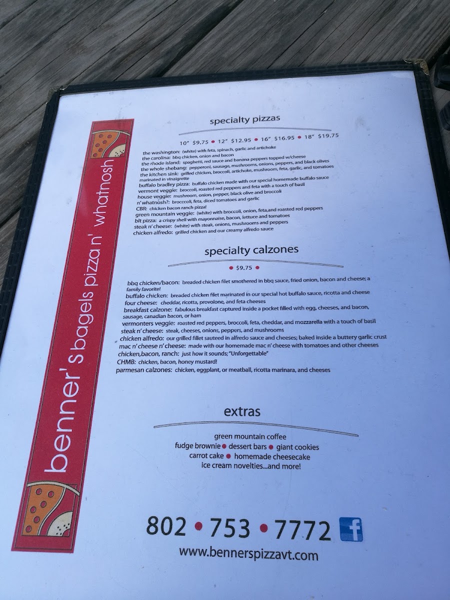 10" $11.95 / 12" $14.95 / 16" $20.95/ Gluten Free $20.95