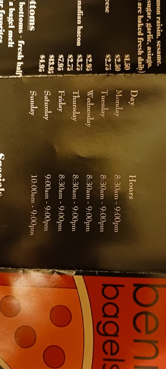 Bagels (plain, sesame, everything, onion, garlic, asiago)