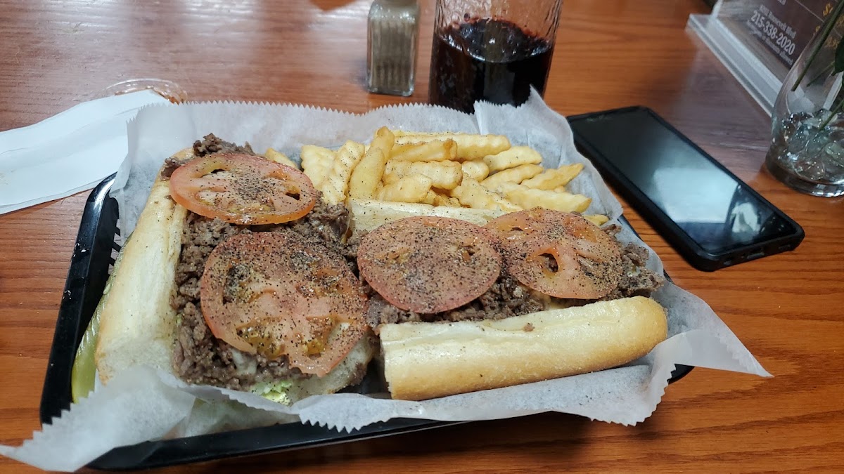 Cheese steak, and Mozzarella fries. To me, their food is very good, their portions are equally as good. The place itself is clean, and their staff is friendly, and they are very accommodating,in terms of service!! I highly recommend going here, whether you are dining in, or picking it up. Their delivery service is very good as well.