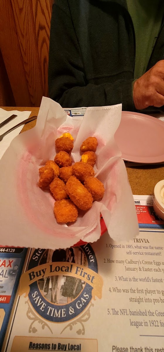 The fried mushrooms were amazing. The pizza was good. Everything was hot and fresh. Your reading will depend on what pizza you like. This was thin crust with decent toppings. I prefer even more toppings on mine. The mushrooms were for, fresh, and tasted delicious.