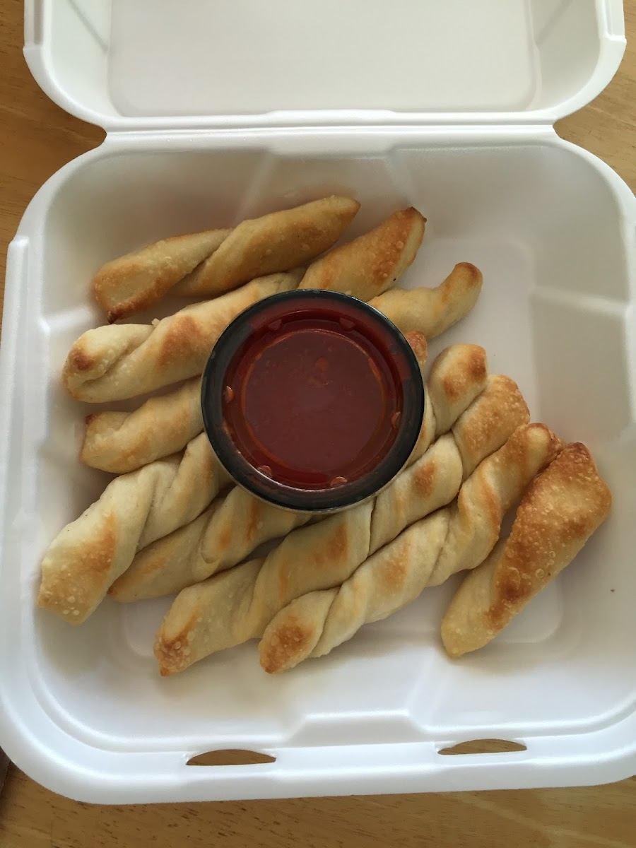 Had the Calzone with pepperoni, onion, green pepper, tomatoes... 100% better that the previous time. Wife had chicken strips and we had an order of breadsticks with cheese. Everything was cooked perfectly!