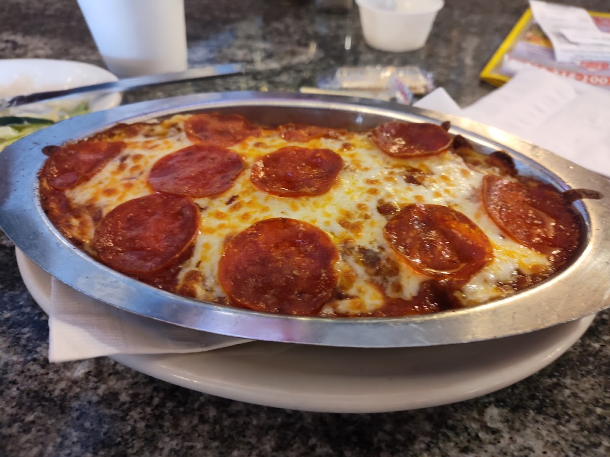 First time. Expected a bigger portion but it was full of flavor. Got the baked spaghetti. First time I ever saw pepperoni on spaghetti and I don't eat it so my dog got a treat. Next time I'll know to order without it. Service was good and quick but I was never able to get my drink refilled. Yes I know it's an extra charge. Bathroom is down tiny hallway down right of counter. Not ADA compliant and filled with boxes. So if you have someone in a wheelchair you better go somewhere else.