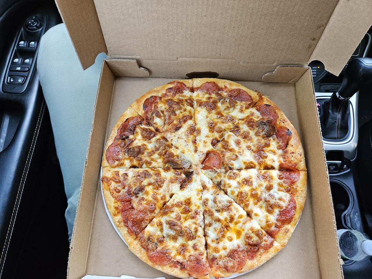 We just moved to the area and found this place by searching Google for ‘pizza near me’. The pictures are what sold me because we usually order well done - that browned cheese in every shared photo had me curious! I didn’t see a website, so I called to place an order. The pizzas only come in Small or Medium, so we went for medium! So glad we did! The pizza was the perfect crunch on the crust, the pepperoni is under the cheese, the sauce is SO good, and that browned cheese… oh baby! We also ordered the Buffalo wings. Those came with ranch and a bag of chips, which was a pleasant surprise! They were crispy, and everything was hot. We will definitely be back!