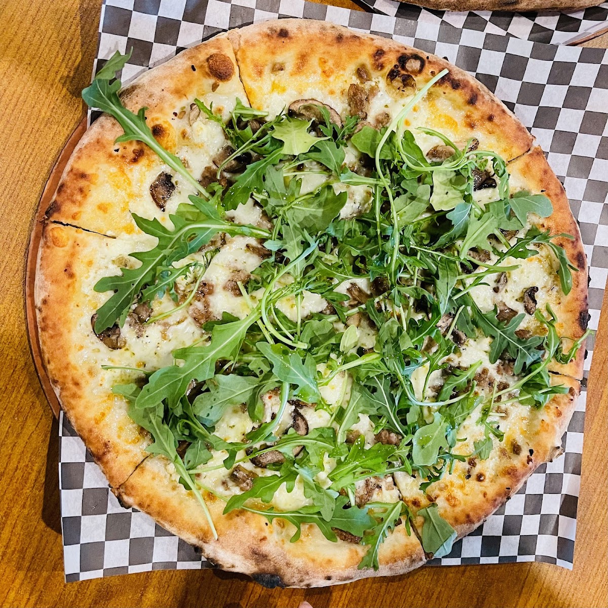 Delicious wood fired pizza! The white pizza with truffle oil and arugula was one of the best neapolitin styles I've had anywhere. Server was really friendly. They had books to keep kids occupied. Overall great experience!