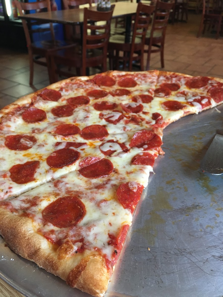 The hostess here was super kind and attentive for our large group. A real sweetheart. Pizza was excellent! We had an XLG (extra large, 18 inches) meat lovers pie which was so big it needed its own table! And everyone in our group agreed that the pizza was great. We also tried some appetizers, standard stuff like mozz sticks, jalopeno poppers, breaded mushrooms and the like. They were good, but the pizza is what really stood out. Thanks for a great experience!