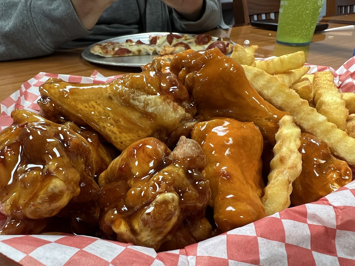 Since I feel the quality of the food is key, going with 4 stars instead of 3. The pizza and the lemon pepper wings were very fresh and tasty. The wings were a good size and nice and crispy. This was our first order, started by calling in around 1:10pm and getting put on hold for 15 minutes, then disconnected. When I arrived to place the order in person at the drive through, after a 3 minute wait, I was asked if I was picking up and I politely explained that I would have been, but was put on hold and disconnected when I tried to call in. Both the staff who greeted me at the window were pleasant and friendly. After taking my order, I was told it would be about 20 minutes. So I set a timer, went and parked for 20 minutes and returned to the drive through where I had to wait another 4 minutes for someone to show up at the window. As for the order itself, all was good other than I asked for extra celery and received a handful of carrot sticks. We will probably try the indoor experience later as the food was good. Will go when we aren’t in a hurry…