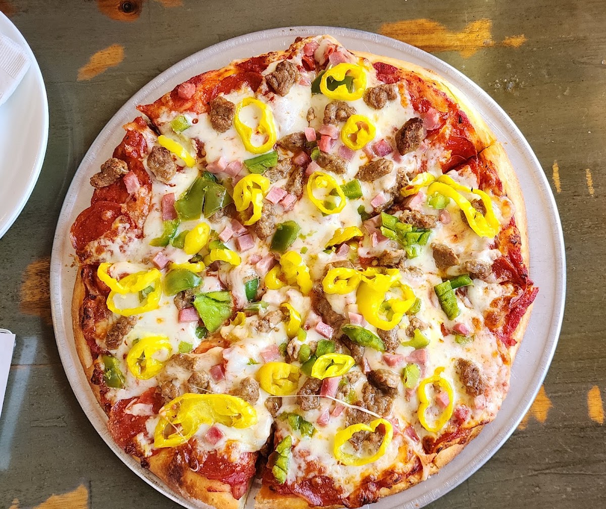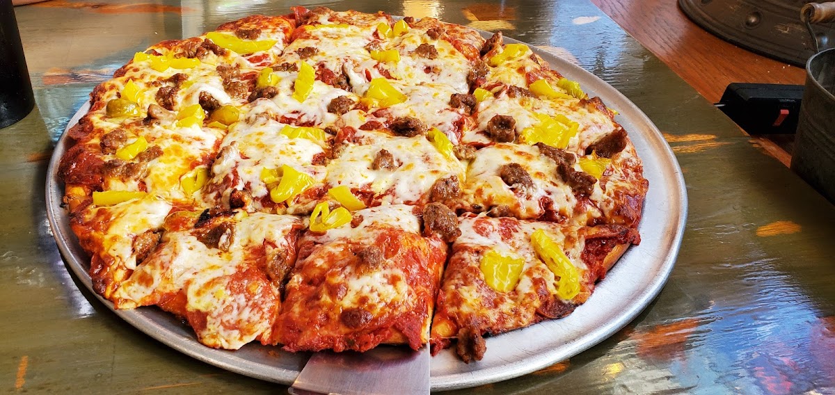 Busy at 2:00 on a beautiful Sunday afternoon. Loaded fries were great! We got a 12" meat lovers pizza to share for 2 people and left with some slices in a to go box. Crust was crispy and of a good texture. The pizza sauce was very tasty! I'll be back to this local favorite spot during my next trip to Augusta.